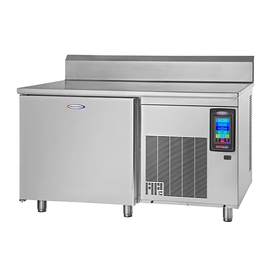 Introducing the American Panel Corporation AP7BCF70-2-C Blast Chiller Freezer, Undercounter. Mastering Temperature Control Solutions has never been easier with this top-of-the-line unit. Designed specifically for commercial restaurant use, this self-contained blast chiller/shock freezer is a game-changer. With a capacity of (7) 18" x 26" pans, it can handle large quantities of food effortlessly. The 7" LCD touch screen controller with Quick Start & A La Carte functionality ensures precise temperature control, while the heated food probe guarantees food safety. The stainless steel interior, exterior, and top not only provide durability but also make cleaning a breeze. Equipped with a powerful 1-1/2 HP compressor, this blast chiller/freezer can rapidly chill 70 lbs. of food from 160°F to 38°F in just 90 minutes and freeze 42 lbs. from 160°F to 0°F in 240 minutes. Trust American Panel Corporation for reliable and efficient temperature control solutions in your commercial kitchen.