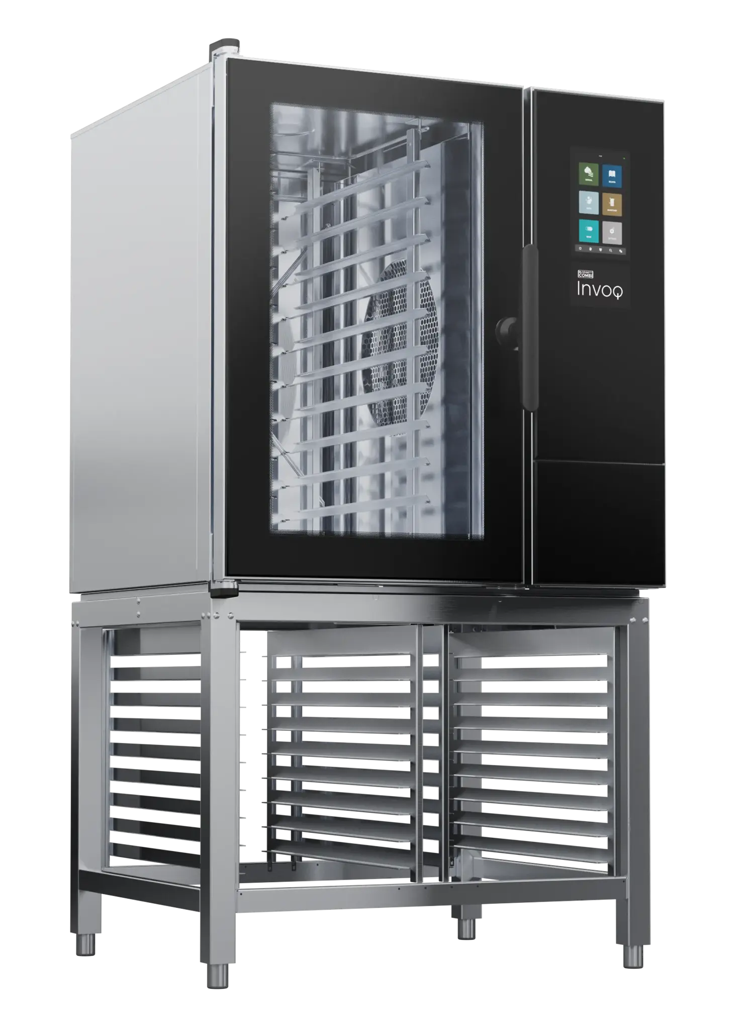 The Invoq Oven is a high-performance, energy-efficient cooking platform designed for modern professional kitchens. Combining sleek aesthetics with intelligent engineering, Invoq simplifies baking, cooking, and steaming with an intuitive interface and fast 3-second boot-up. Crafted with toughened glass, premium LED lighting, and easy-to-clean surfaces, every detail supports hygiene, functionality, and durability under pressure. Delivering 70% less energy consumption and 17% more cooking capacity, Invoq boosts sustainability without compromising performance. Its innovative steam and convection technology enhances food quality, preserving flavor, texture, and tenderness. Stackable units offer flexibility and space-saving efficiency. Cook different dishes simultaneously or power down one oven during off-peak hours to cut costs. Invoq isn’t just an oven—it’s a smarter way to cook.