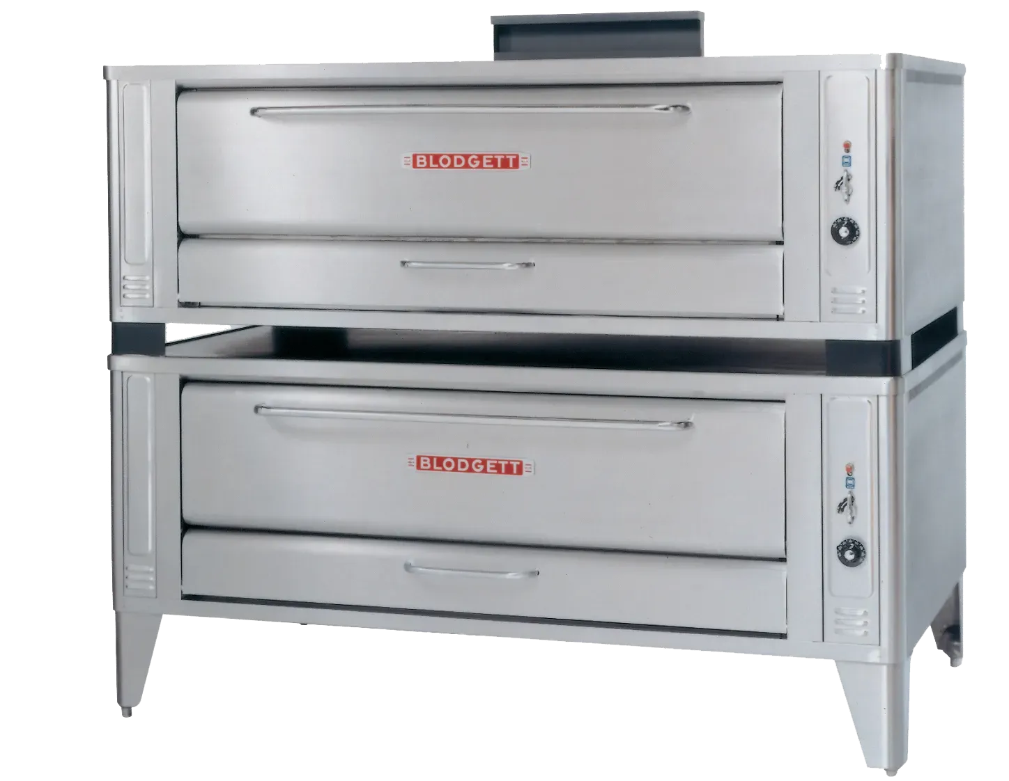 For a heavy-duty, high volume, fast recovery pizza oven, you can trust the Blodgett large pizza deck ovens featuring bottom air intake. We have designed a system to transfer just the right amount of heat to the top ensuring a perfectly cooked pizza time after time. These ovens can be stacked to optimize your production capacity. Our 10” tall door is just the right height, combining functionality and energy savings all in the same foot print. 1048-DBL is a double stack oven with two 10” high baking compartments and includes 12” s/s legs, s/s crown angle leg frame, stainless steel draft diverter or direct vent, flue connector and crown angle trim
