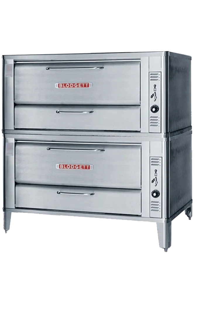 The Blodgett Deck Oven line has set industry wide standards for excellence in baking characteristics, performance and reliability. Simplicity of design and quality construction throughout assure years of trouble-free operation. Blodgett provides the strongest warranty in the business with a standard five-year door warranty! 951-DBL is a double stack oven with two 12” high baking compartments and includes 7” adjustable s/s legs, s/s draft diverter or direct vent, crown angle trim and double gas connector
