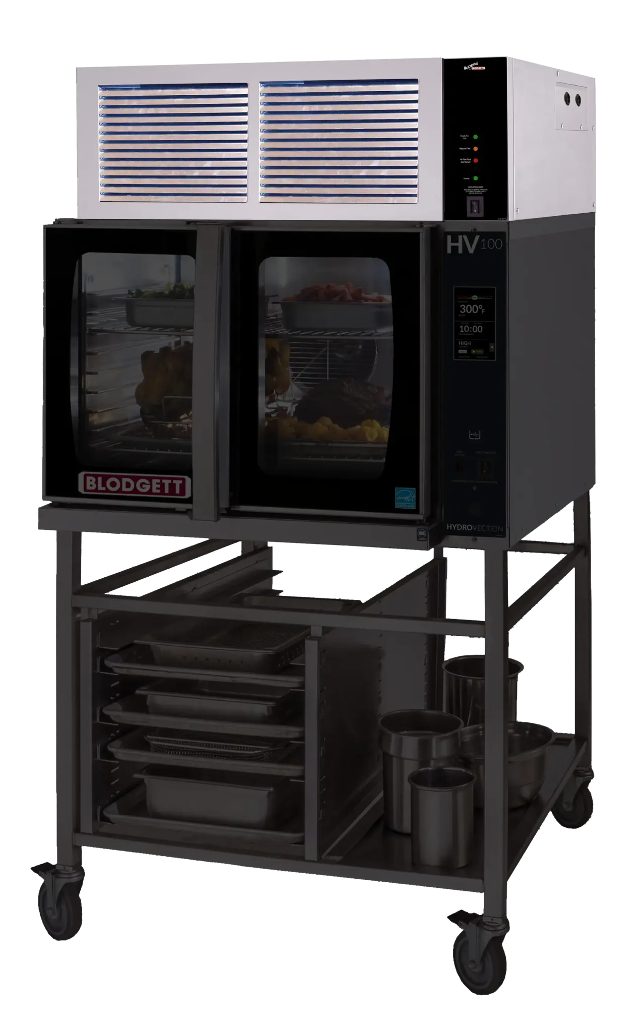 The Hoodini Hydrovection hood collects and filters exhaust from the oven cavity(ies). The "scrubbed” air is then returned to the oven cooking cavity. TESTED & APPROVED Using EPA test method 202, emissions of grease laden vapors were measured at 3.62 mg/m for bone-in, skin-on, quartered roasting chickens. Results are less than the established 5mg/m standard. SIMPLE OPERATION the Hoodini is connected to the ovens using duct work to pull the oven exhaust up and into the hood. MAXIMIZE YOUR KITCHEN SPACE with only 2” required top clearance. Available in single & double stack. EASY INSTALLATION Power is provided from the oven, no additional electrical supply is needed. SIMPLE TO MAINTAIN with our easy to replace filters.