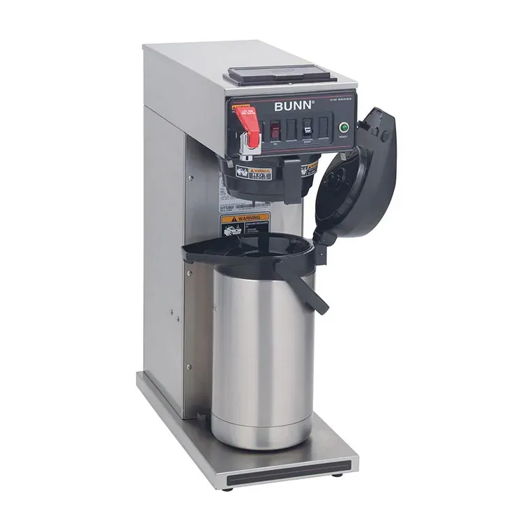 Optimize workflow with high-quality equipment like the Bunn, 23001.0006, Coffee Brewer for Airpot. This automatic brewer is designed to meet the demands of a commercial restaurant, offering a capacity to brew 3.8 gallons per hour. With its digital circuitry and timer function operated by front panel switches, you can easily control the brewing process to ensure consistent and delicious coffee every time. The hot water faucet allows for convenient access to hot water for tea or other hot beverages. The stainless decor adds a sleek and professional look to any restaurant setting. This coffee brewer accommodates 1.9 to 3.0 liter airpots (sold separately), making it easy to serve coffee to a large number of customers. With its high power and reliable performance, the Bunn Coffee Brewer for Airpot is a must-have for any commercial restaurant looking to enhance their coffee service.