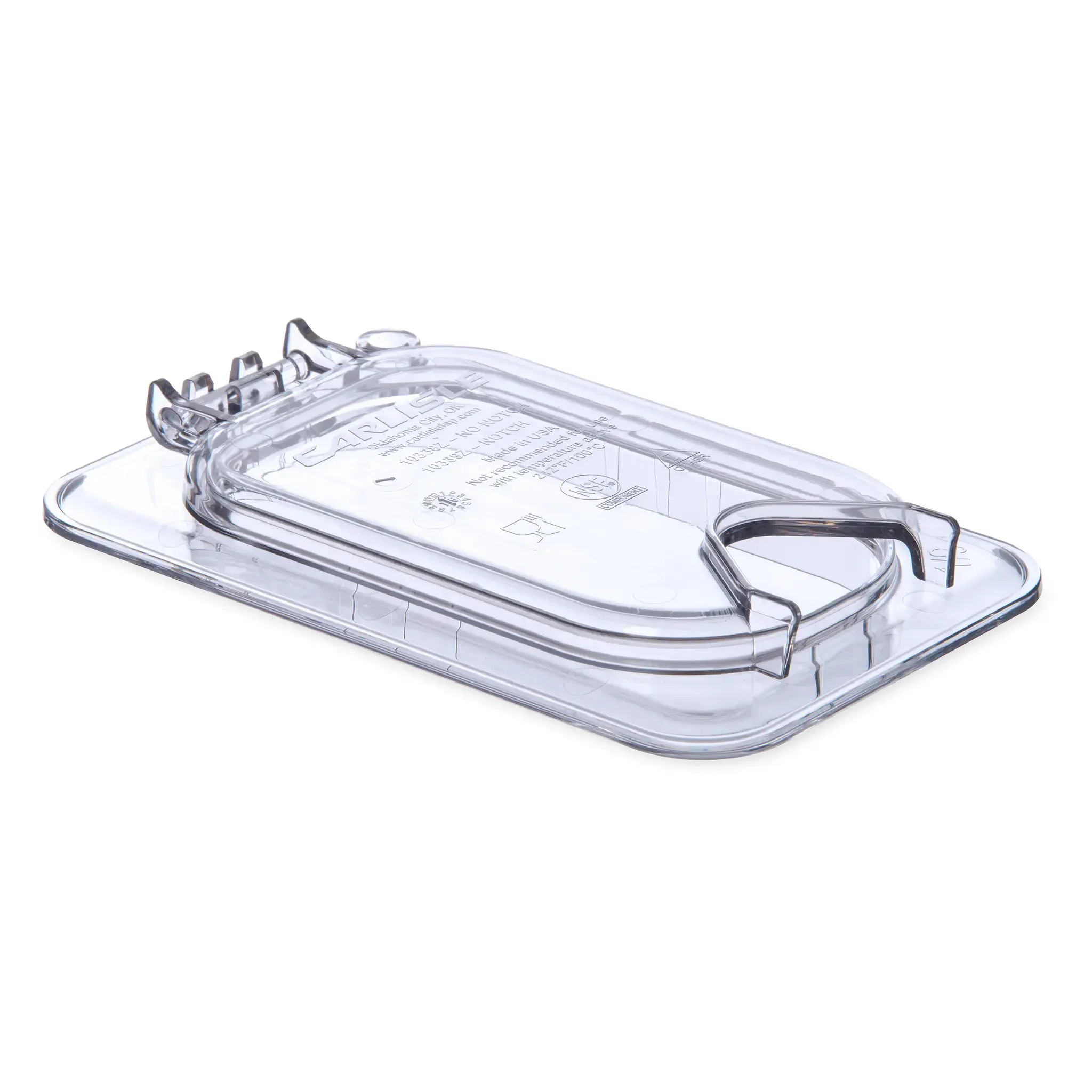 Elevate your offerings with the Carlisle 10339Z07 Food Pan Cover. Designed for commercial restaurant use, this innovative essential is perfect for enhancing your food presentation and storage. Made in the USA, this clear polycarbonate lid is durable and dishwasher safe, ensuring long-lasting performance. The hinged design with a peg hole and handle allows for easy access and convenient handling, saving you time and effort in busy kitchen environments. With a temperature range of -40 to 212°F, this lid is versatile and can withstand extreme conditions. The Carlisle 10339Z07 Food Pan Cover is NSF certified, guaranteeing its safety and quality. Upgrade your food pans with this reliable and practical lid to streamline your operations and impress your customers.