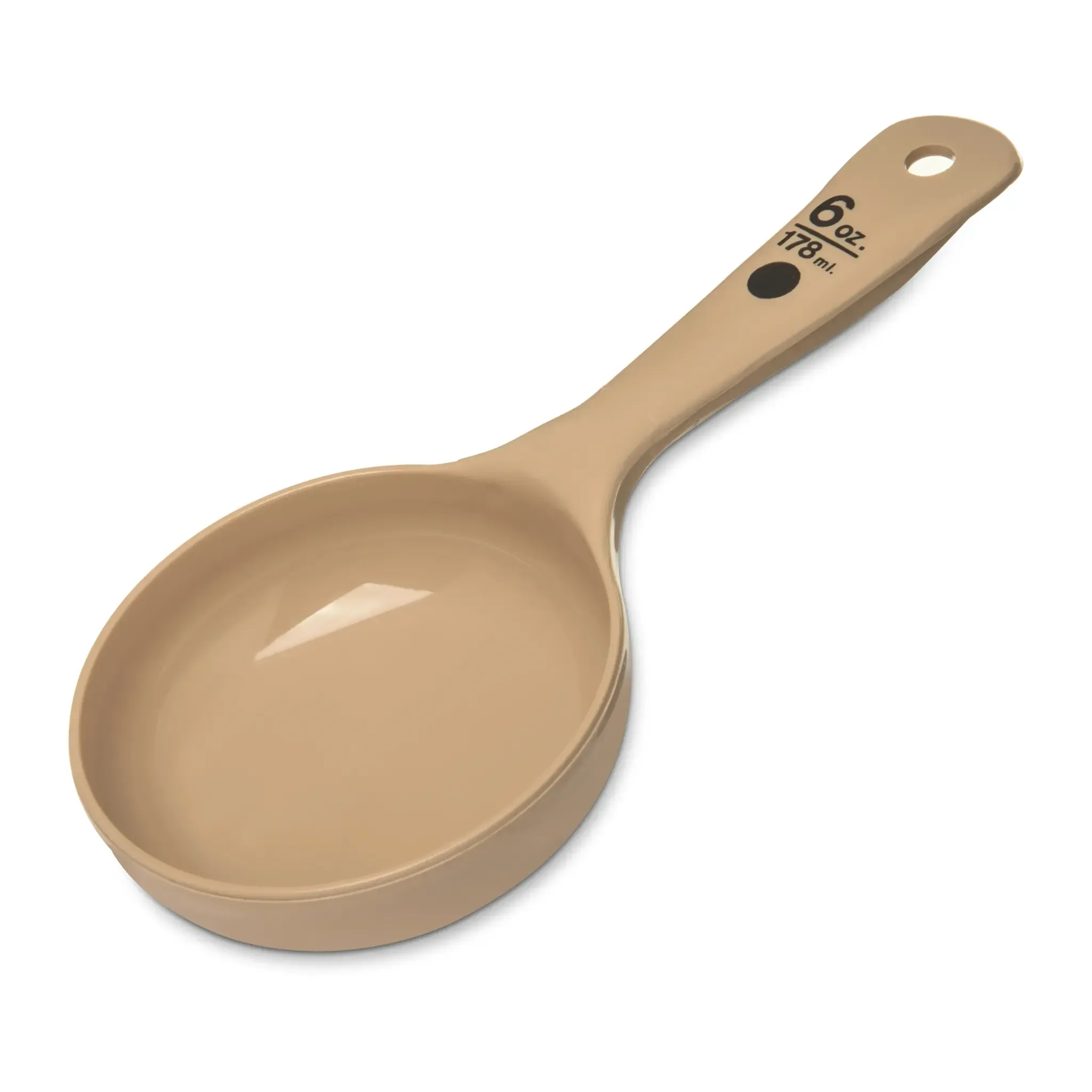 Create masterpieces with state-of-the-art tools. Introducing the Carlisle 433006 Spoon, Portion Control. Designed for commercial restaurant use, this portion server is a must-have for any professional kitchen. Measure Misers Portion Server is perfect for accurately measuring and serving precise portions. The short handle allows for easy control and maneuverability, while the beige color adds a touch of elegance to your presentation. Made from durable polycarbonate, this spoon is dishwasher safe and NSF certified, ensuring its quality and safety. Whether you're serving soups, sauces, or desserts, this Carlisle spoon is the ideal tool for portion control. Trust in Carlisle's reputation for excellence and choose the 433006 Spoon, Portion Control for your restaurant's needs. Made in the USA, this spoon is a reliable and authentic addition to your kitchen arsenal.