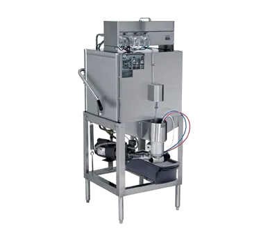 Elevate your culinary experience with the CMA Dishmachines AH Dishwasher. This top-of-the-line door type dishwasher is designed to meet the demands of a busy commercial restaurant. With its low temperature chemical sanitizing feature and priming switches, you can ensure that your dishes are thoroughly cleaned and sanitized. The top mounted controls and auto "start/stop" function make it easy to operate, saving you time and effort. The straight-thru design allows for smooth and efficient dishwashing, with a capacity of up to 40 racks per hour. The dishwasher also comes with a delimer switch and a Poly Pro scrap accumulator, making it easy to maintain and clean. Made with stainless steel construction, this dishwasher is built to last and is NSF and cULus certified. Included with the dishwasher are one open rack and one peg rack, providing versatility for different types of dishes. Upgrade your restaurant's dishwashing capabilities with the CMA Dishmachines AH Dishwasher.