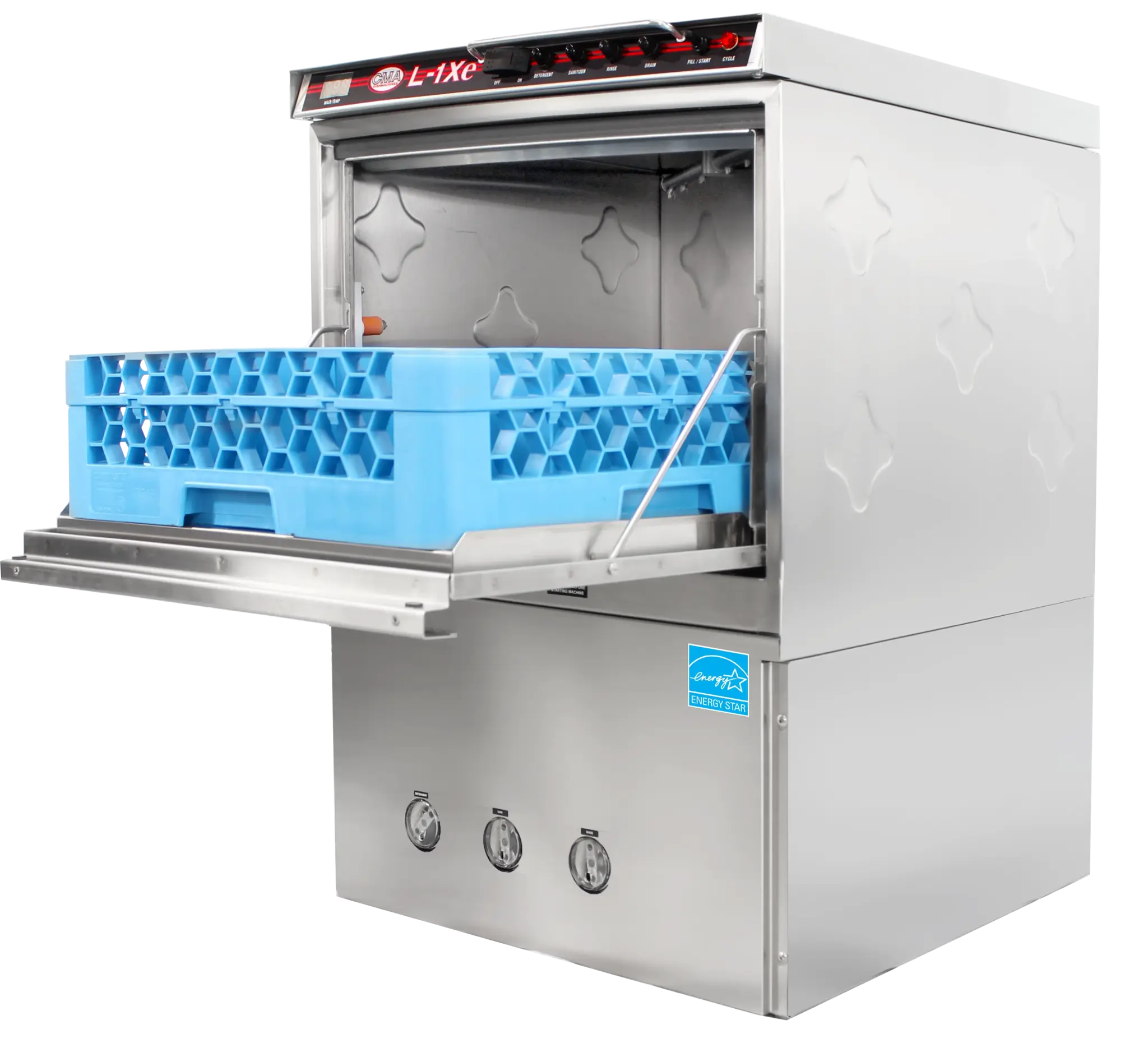Introducing the CMA Dishmachines, L-1Xe w/Heater, Dishwasher, Undercounter - the ultimate solution to dominate the culinary world. This undercounter dishwasher is designed to meet the demanding needs of commercial restaurants, ensuring efficient and thorough cleaning of dishes and glassware. With a low temperature chemical sanitizing system, this dishwasher can handle up to 30 racks per hour, providing a high level of productivity. The built-in chemical pumps and deliming system make maintenance a breeze, while the upper and lower stainless steel wash arms with reinforced end caps ensure a thorough and consistent clean. The stainless steel construction guarantees durability and longevity, while the immersion heater ensures optimal water temperature for effective cleaning. This dishwasher also includes an open and peg rack, allowing for versatile loading options. NSF, UL, cUL, and Energy Star certified, this CMA Dishmachines dishwasher is the perfect addition to any commercial restaurant, delivering exceptional performance and reliability.