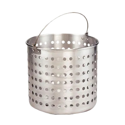 Optimize your kitchen workflow with innovative tools. Introducing the Crestware BSK60 Stock/Steam Pot Steamer Basket. Designed for commercial restaurant use, this steamer basket is a game-changer in the kitchen. With approximately 5/8" holes, it allows for efficient steaming of vegetables, seafood, and more, ensuring even cooking and preserving the flavors and nutrients of your ingredients. The bail handle provides a secure grip, allowing for easy lifting and transferring of the basket, while the molded feet ensure stability during use. Made of durable aluminum, this steamer basket is built to withstand the demands of a busy kitchen. It fits perfectly in a 60 qt. stock pot, making it an essential tool for large-scale cooking. Enhance your restaurant's efficiency and elevate your culinary creations with the Crestware BSK60 Stock/Steam Pot Steamer Basket.
