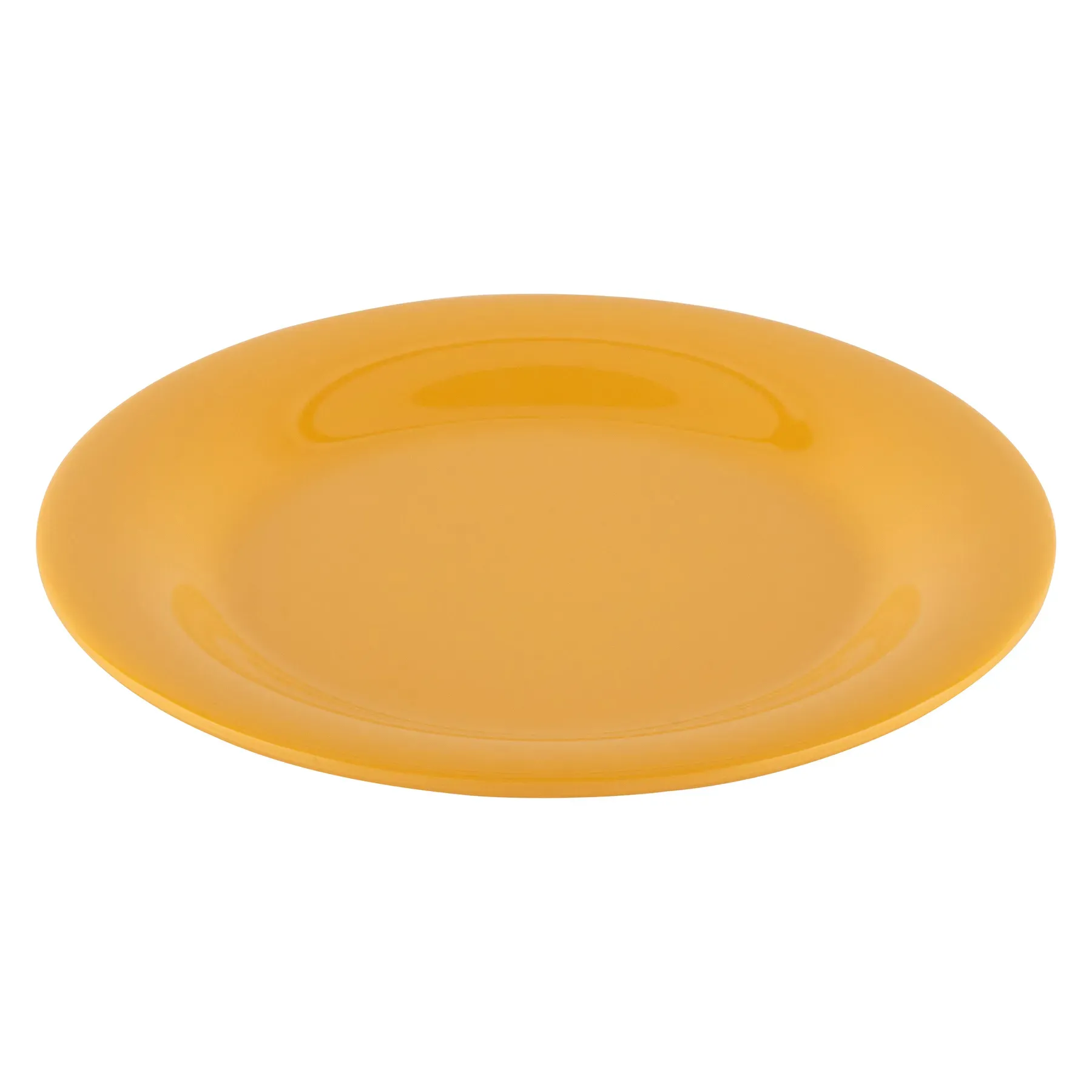Designed for excellence, this product from GET Enterprises is the Diamond Mardi Gras Plate, a perfect addition to any restaurant setting. With a diameter of 6-1/2 inches, this round plate features a wide rim that not only enhances its aesthetic appeal but also provides ample space for presenting your culinary creations. The vibrant tropical yellow color adds a touch of festivity and warmth to your table settings, making it ideal for a variety of dining environments.