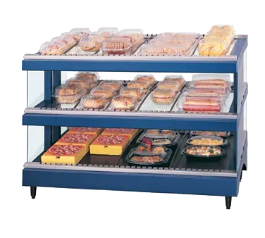 Enhance your commercial kitchen with the Hatco GR3SDS-27D Merchandiser. This free-standing display warmer is designed to showcase your delicious food items while keeping them at the perfect temperature for serving. With its Glo-Ray patented heated glass slant display, this merchandiser ensures that your food stays warm and visually appealing to customers. The adjustable thermostat allows you to easily control the temperature, while the hardcoated heated base and heated glass shelves provide even heat distribution. Made in the USA, this merchandiser is built to last and meets ANSI/NSF 4 standards for food safety. The stainless steel construction adds durability and a sleek look to your kitchen. With 15 rods and dual shelves, you have plenty of space to display a variety of food items. Whether you're running a cafeteria, buffet, or restaurant, the Hatco GR3SDS-27D Merchandiser is a must-have for showcasing your culinary creations.