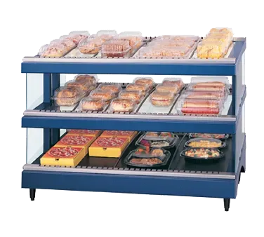 Introducing the Hatco GR3SDS-33D Merchandisers, designed to simplify restaurant operations and enhance your commercial restaurant setting. This free-standing display warmer features Hatco's patented Glo-Ray heated glass slant design, ensuring optimal food presentation and temperature control. With 18 adjustable rods and dual shelves, you can showcase a variety of delicious dishes while keeping them at the perfect serving temperature. The adjustable thermostat allows you to customize the heat settings to meet your specific needs. The hardcoated heated base and heated glass shelves provide durability and even heat distribution, ensuring that your food stays warm and appetizing. Made in the USA and certified by cULus, UL EPH Classified, and ANSI/NSF 4, this Hatco merchandiser is built to meet the highest standards of quality and safety. Upgrade your restaurant's display capabilities with the Hatco GR3SDS-33D Merchandisers and impress your customers with mouthwatering visuals and perfectly heated food.