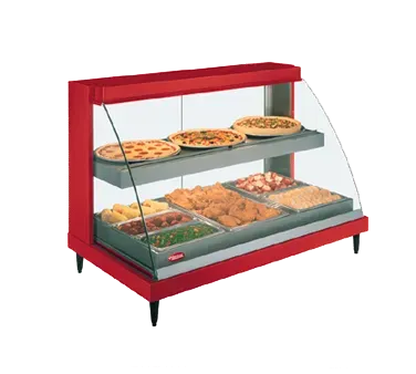 Unleash gastronomic brilliance with Hatco's GRCD-3PD Merchandisers. This Glo-Ray Designer Heated Display Case is the perfect addition to any commercial restaurant, offering a sleek and modern countertop design that will enhance the presentation of your delicious creations. The tempered curved glass not only provides a clear view of the food, but also helps to maintain the ideal temperature inside. With three pan dual shelves, you can showcase a variety of dishes, enticing customers with their mouthwatering appeal. The incandescent lighting further enhances the visual appeal, making your food look even more appetizing. The stainless steel interior ensures durability and easy cleaning, while the 4" adjustable counter legs allow for convenient placement. This UL and NSF 4 certified display case is a reliable and efficient solution for showcasing your culinary masterpieces and attracting customers to your restaurant.