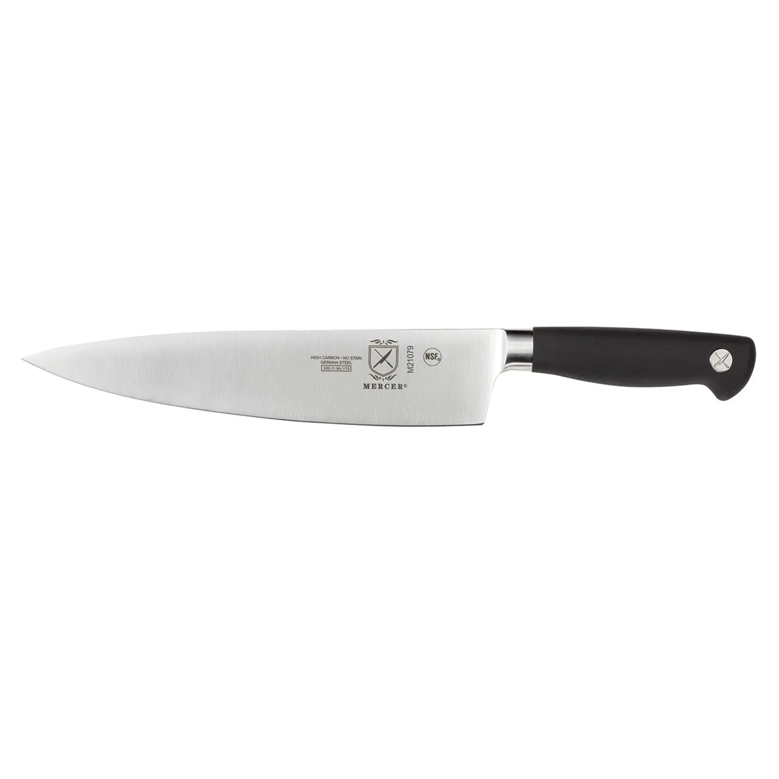 Enhance culinary precision with the Mercer Culinary, M21079 Chef's Knife. This 9" knife is designed for commercial restaurant use, making it the perfect tool for professional chefs. The precision-forged, high carbon German steel blade ensures exceptional durability and sharpness, allowing for effortless slicing, dicing, and chopping. The short bolster design provides optimal balance and control, reducing hand fatigue during extended use. The black non-slip Santoprene handle offers a secure grip, even when wet, ensuring safety and comfort in fast-paced kitchen environments. With NSF certification, this knife meets the highest standards of quality and hygiene. Trust Mercer Culinary for reliable, high-performance knives that will elevate your culinary creations.