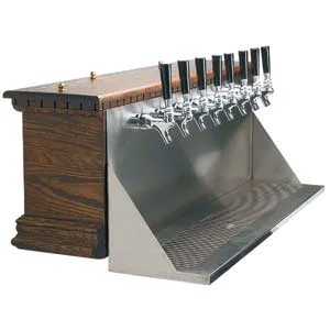 Cook with precision using the Micro Matic USA, CFD08A Draft Beer Dispensing Tower. This countertop draft beer tower is designed for commercial restaurant use, offering a sleek and efficient solution for serving up to 8 different beers on tap. The tower features a dark oak finish with a stainless steel fascia, adding a touch of elegance to any bar or restaurant setting. The air-cooled system ensures that your beers are served at the perfect temperature, while the integrated stainless steel drip tray with a removable perforated insert and threaded drain keeps your bar area clean and tidy. The CFD08A also offers the option for custom engraving on the front, allowing you to personalize the tower to fit your establishment's branding. With its durable construction and stylish design, the Micro Matic USA, CFD08A Draft Beer Dispensing Tower is a must-have for any commercial restaurant looking to elevate their beer service.