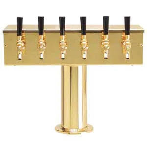 Invest in superior quality with the Micro Matic USA DS-256-PVD Draft Beer Dispensing Tower. This T-style draft beer tower is designed for commercial restaurant use, providing a sleek and efficient solution for dispensing draft beer. With its air-cooled system, this tower ensures that your beer stays at the perfect temperature, delivering a refreshing and satisfying experience for your customers. The tower features six brass faucets, allowing you to serve multiple beer varieties simultaneously. The 3" on center spacing and 11-5/8" faucet clearance provide ample room for filling glasses and growlers. The 4" diameter column with a 6" diameter base adds stability and style to your bar setup. Mounting gaskets and hardware are included for easy installation. With its PVD brass finish, this draft beer dispensing tower not only performs exceptionally but also adds a touch of elegance to your establishment. Invest in the Micro Matic USA DS-256-PVD Draft Beer Dispensing Tower and elevate your beer service to new heights.
