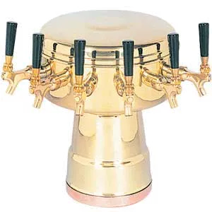 Kitchen innovation at its best, the Micro Matic USA, MTB-6BR Draft Beer Dispensing Tower is a must-have for any commercial restaurant. This mushroom draft beer tower is designed to enhance the beer dispensing experience, with its air-cooled system ensuring that every pour is refreshingly cold. With six brass faucets, this tower allows for multiple beer options, giving customers a wide selection to choose from. The polished brass finish adds a touch of elegance to any bar setup, making it a visually appealing addition to your restaurant. The 10" faucet clearance and 3-5/8" on center spacing provide ample space for filling up pitchers and growlers. The 7-1/2" diameter base ensures stability, preventing any accidental spills. Whether you're running a sports bar, pub, or brewery, the Micro Matic USA, MTB-6BR Draft Beer Dispensing Tower is the perfect choice for efficient and stylish beer service.