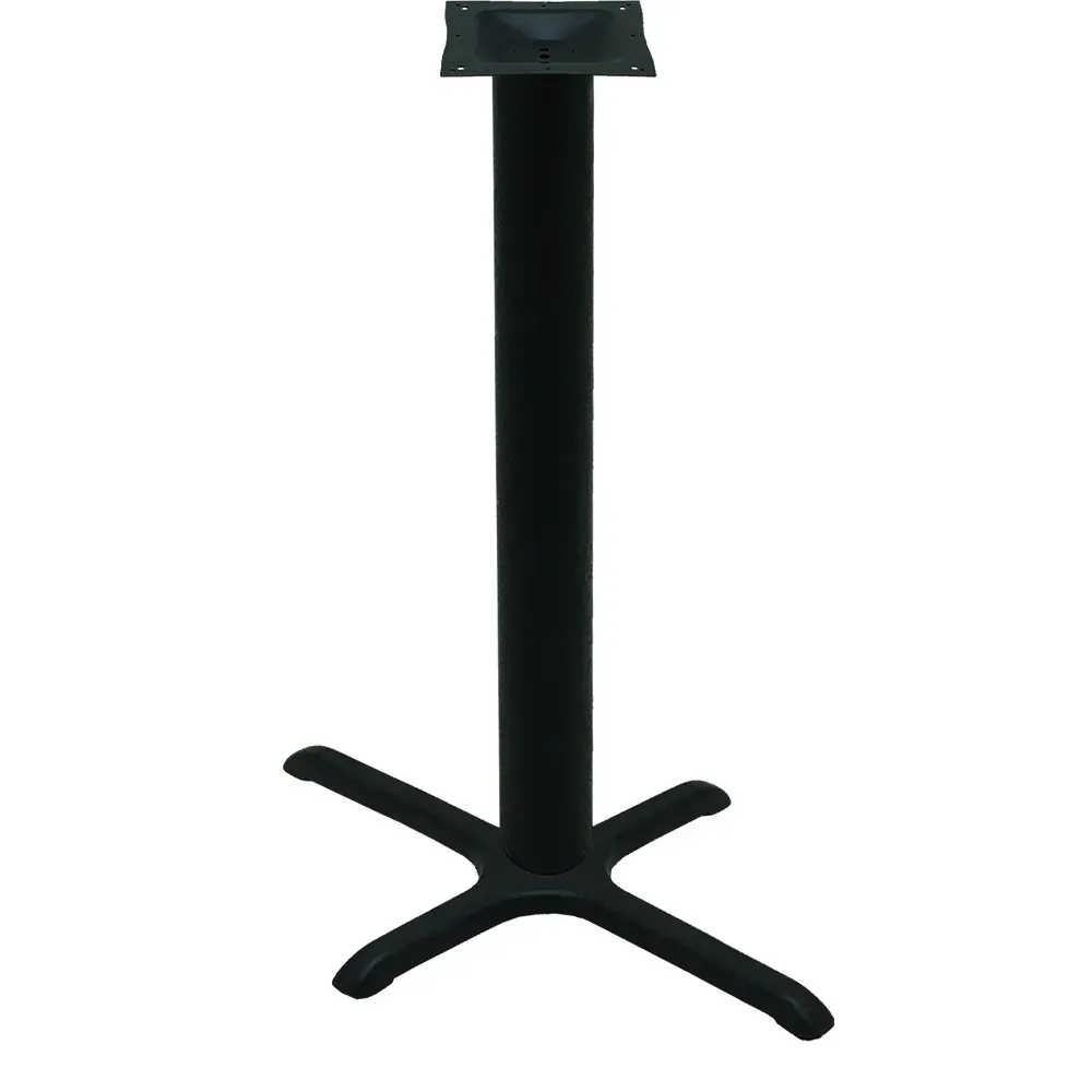 Introducing the Oak Street B2230-4-BAR Table Base, a must-have for commercial restaurants looking to elevate their furniture. This table base is designed with a 22" x 30" cross base and a 4" bar height labor saver tube, providing stability and durability for busy restaurant environments. Made with black stamped steel construction, this table base is not only stylish but also built to withstand the demands of a commercial setting.