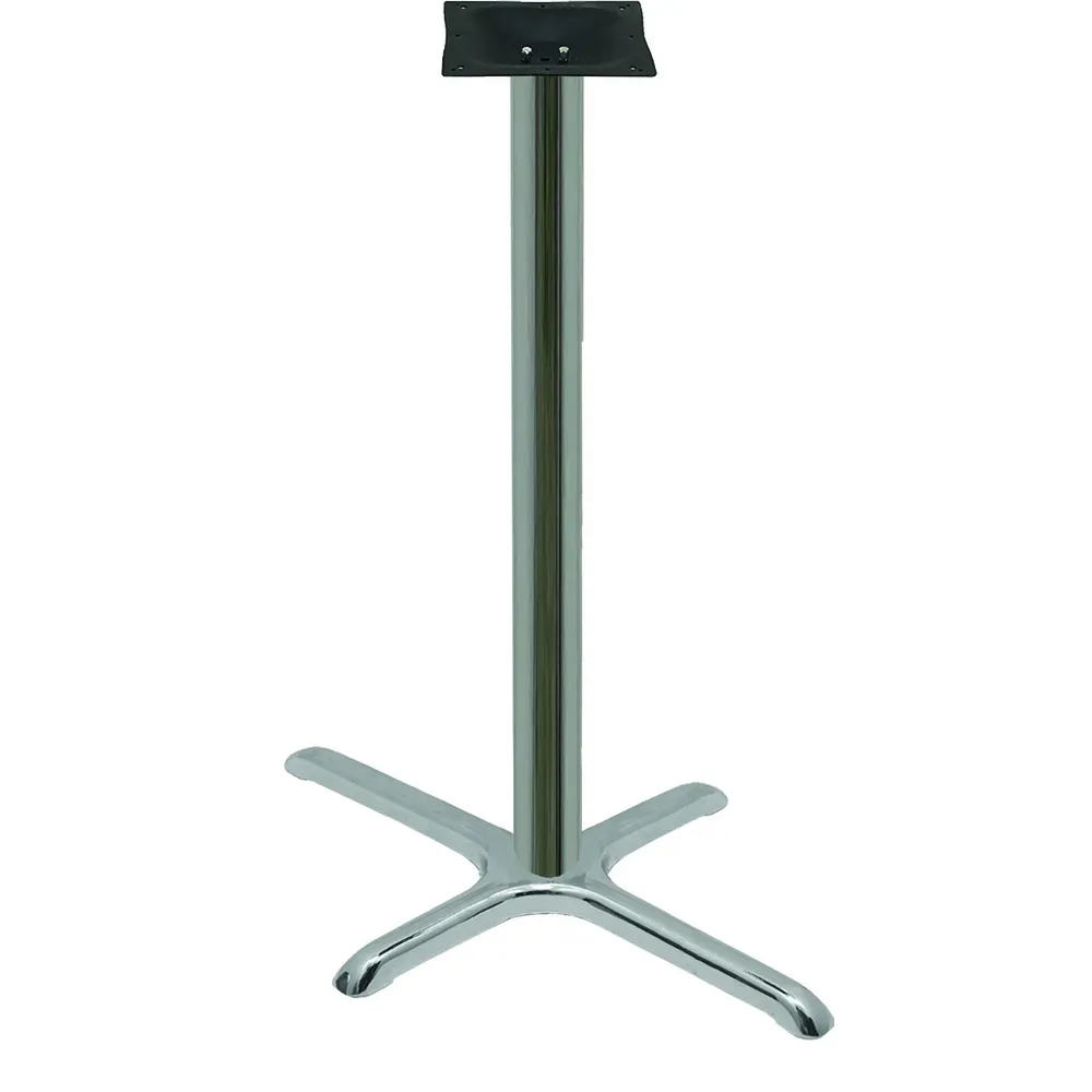 Upgrade your restaurant ambiance with the Oak Street B2230CHR-BAR Table Base. This metal table base is designed to enhance the superior furnishings of your establishment, adding a touch of elegance and durability. With a 22" x 30" base spread and a 3" column, this table base provides stability and support for your tabletops. The 40-3/4" bar height is perfect for bar areas or high-top tables, creating a stylish and functional seating option for your customers. The non-marring chrome levelers ensure that your floors stay protected while providing easy adjustability. Made from stamped steel and chrome plated, this table base is built to withstand the demands of a busy restaurant environment. Trust Oak Street, a reputable vendor in the industry, to deliver quality and reliability with the B2230CHR-BAR Table Base.