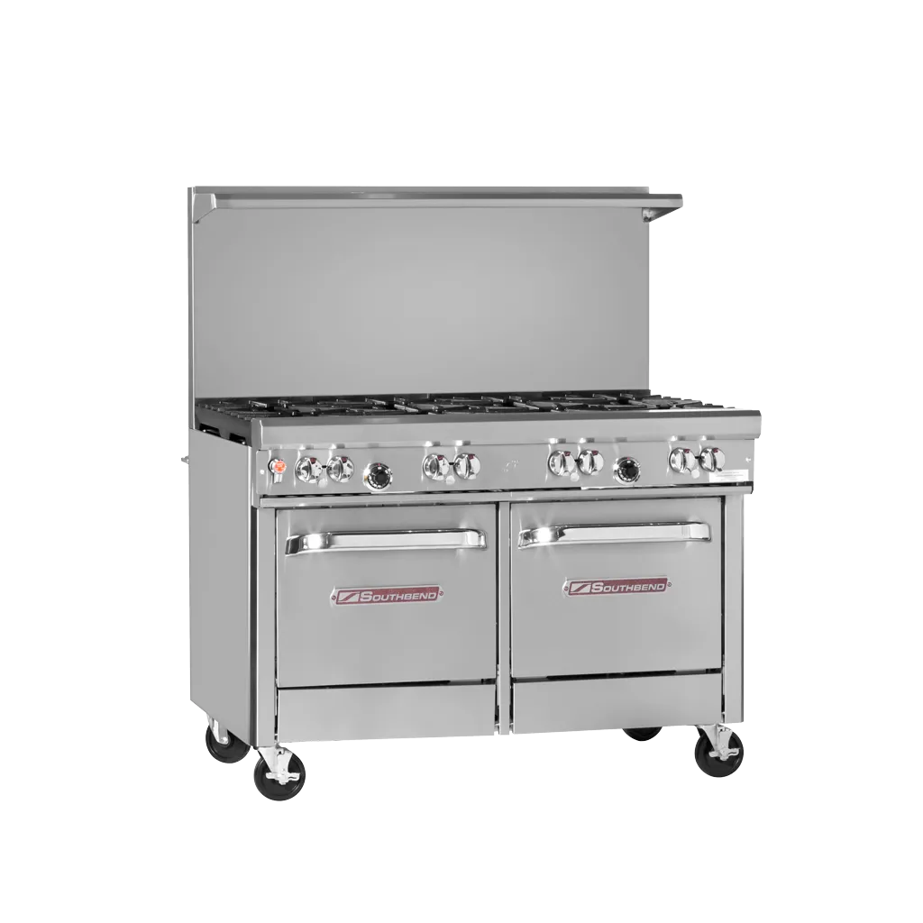 Empower your kitchen staff with the Southbend, 4481AC-3GL, Range, 48" Restaurant, Gas. This ultimate restaurant range is designed to meet the demands of a busy commercial kitchen. With two non-clog burners and a standard griddle on the left, your chefs will have plenty of cooking space to prepare a variety of dishes simultaneously. The standing pilot ensures quick and easy ignition, while the convection oven with battery spark ignition provides consistent and efficient baking results. The cabinet base offers convenient storage for your kitchen essentials, and the included racks allow for organized and efficient cooking. Made with stainless steel front, sides, shelf, and adjustable legs, this range is not only durable but also easy to clean. With a powerful 162,000 BTU, this range is perfect for high-volume cooking. Trust Southbend, a reputable vendor in the industry, to deliver a reliable and efficient range for your commercial restaurant.