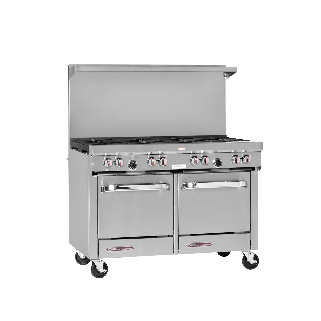 Unleash your inner chef with the Southbend S48EE-4G Range, a must-have for any commercial restaurant. This 48" gas range is designed to meet the demands of a busy kitchen, offering a griddle and manual controls for precise cooking. The two space saver ovens feature a snap action thermostat, ensuring consistent and reliable results every time. With two removable crumb drawers and a hinged lower valve panel, cleaning up is a breeze. Each oven also includes a rack, providing ample space for baking and roasting. The stainless steel front and sides not only give this range a sleek and professional look, but also make it durable and easy to clean. The removable shelf, 4" front rail, and 6" adjustable legs add versatility and convenience. With certifications from cCSAus, CSA Flame, CSA Star, and NSF, you can trust in the quality and safety of this Southbend range. Upgrade your kitchen with the Southbend S48EE-4G Range and experience the difference in performance and efficiency.
