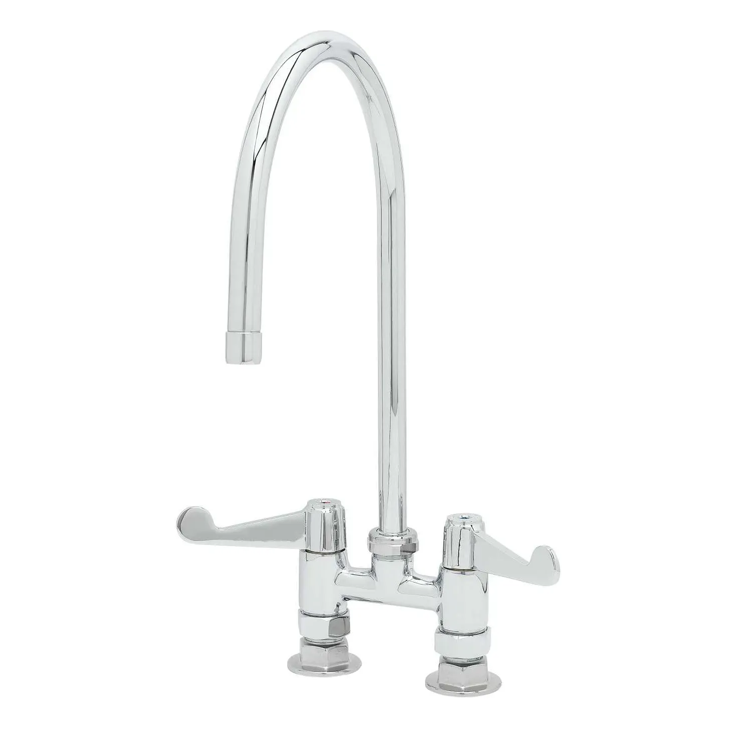 Maintain System Integrity with the T&S Brass, 5F-4DWS09, Faucet, Deck Mount. This commercial-grade faucet is designed to meet the rigorous demands of a busy restaurant kitchen. With its polished chrome plated brass body, it not only adds a touch of elegance to your space but also ensures durability and longevity. The 9" equip swivel gooseneck with a laminar full flow device allows for easy maneuverability and precise water control, making it ideal for filling large pots and pans. The quarter-turn ceramic cartridges provide smooth operation and prevent leaks, saving you time and money on maintenance. Whether you're washing dishes or prepping ingredients, this deck mount faucet delivers reliable performance and exceptional water flow. Trust T&S Brass to deliver the quality and functionality you need for your commercial kitchen.