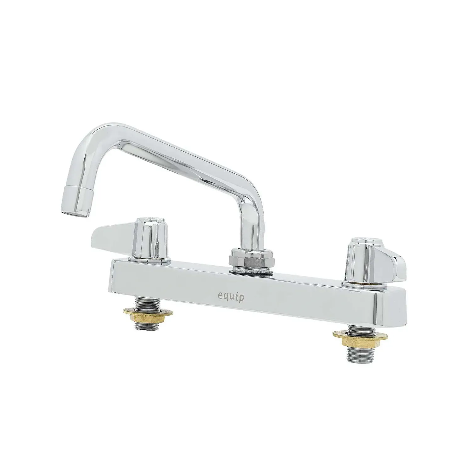Optimize Equipment Function with the T&S Brass, 5F-8CLX08, Faucet, Deck Mount. This high-quality faucet is designed to enhance the efficiency and functionality of your commercial restaurant. With its polished chrome plated brass body, it not only adds a touch of elegance to your establishment but also ensures durability and longevity. The 8" equip swing nozzle with a laminar full flow device allows for precise control and a steady stream of water, making it perfect for various tasks in the kitchen. The quarter-turn ceramic cartridges provide smooth operation and prevent leaks, saving you time and money on maintenance. Whether you're washing dishes, filling pots, or cleaning produce, this deck mount faucet delivers exceptional performance. Trust T&S Brass, a reputable vendor known for their reliable and innovative products. Upgrade your restaurant's equipment with the T&S Brass, 5F-8CLX08, Faucet, Deck Mount.