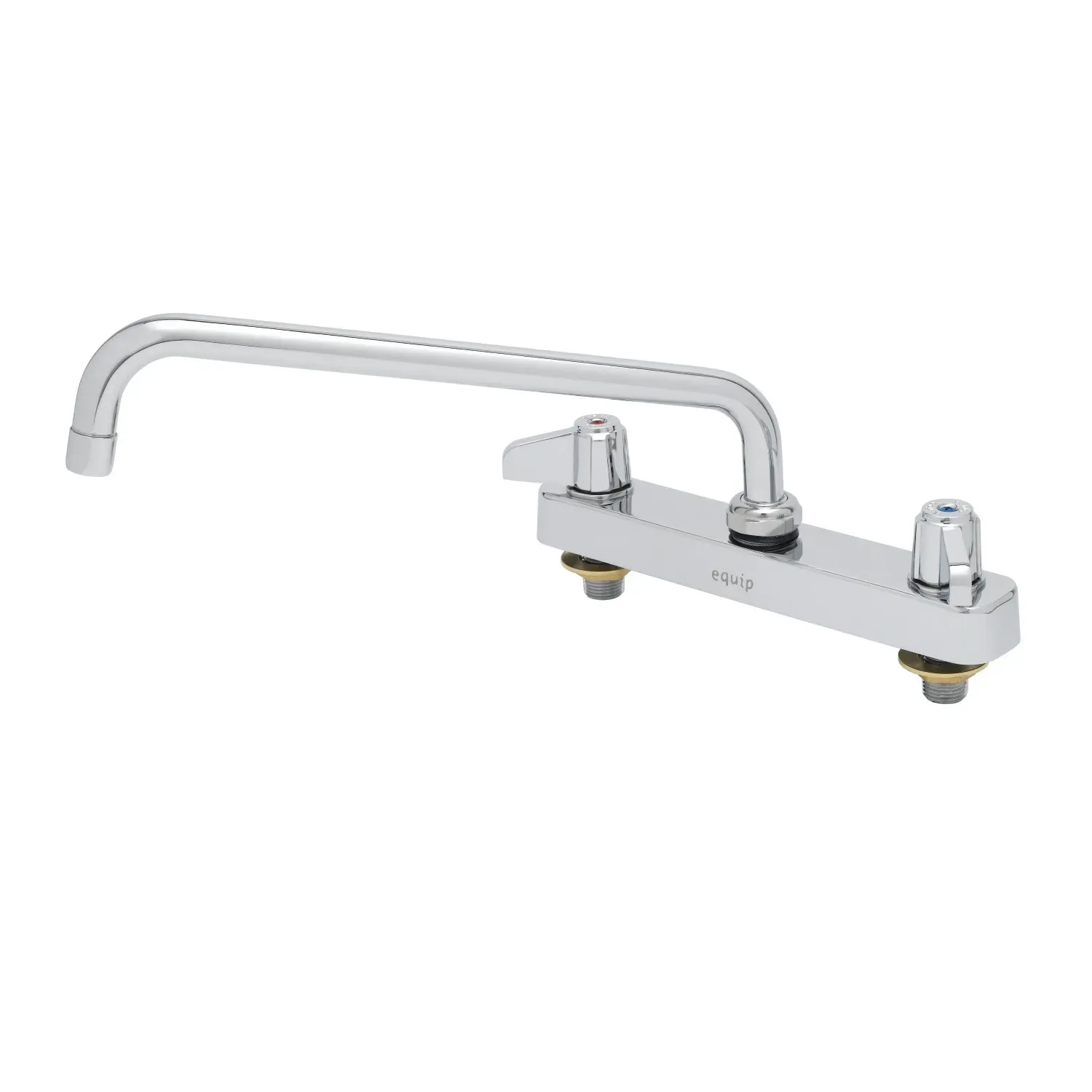 Maintain Operational Safety with the T&S Brass, 5F-8CLX12, Faucet, Deck Mount. This high-quality faucet is designed to meet the demands of a busy commercial restaurant setting. With its polished chrome plated brass body, it not only adds a touch of elegance to your establishment but also ensures durability and longevity. The 8" deck mount mixing faucet features a 12" equip swing nozzle with a laminar full flow device, providing a steady and controlled stream of water. The quarter-turn ceramic cartridges offer smooth operation and prevent leaks, reducing the risk of accidents and maintaining operational safety. Whether you're washing dishes, filling pots, or rinsing produce, this faucet delivers reliable performance. Trust T&S Brass, a reputable vendor known for their top-notch products. Upgrade your restaurant's kitchen with the T&S Brass, 5F-8CLX12, Faucet, Deck Mount and experience the difference in quality and functionality.