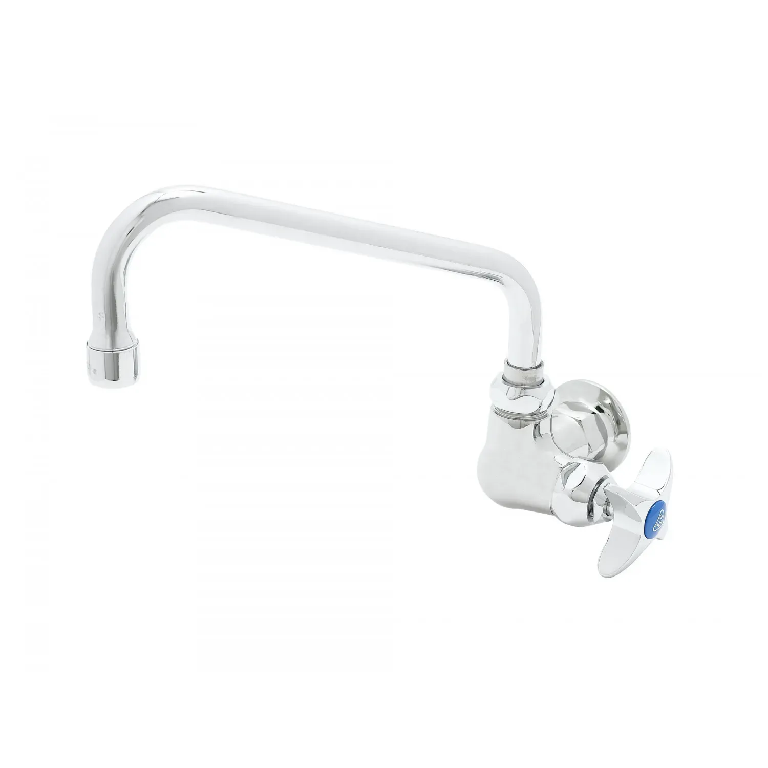 Maintain System Performance with the T&S Brass B-0210-060X Faucet, Pantry. This single pantry faucet is designed for commercial restaurant use, ensuring optimal performance and durability. With its single hole base and wall mount design, it provides a seamless and space-saving solution for any kitchen setup. The 8" swing nozzle allows for easy maneuverability, making it convenient to fill pots and pans or rinse dishes. The polished chrome plated brass body not only adds a sleek and professional look to your restaurant, but also ensures long-lasting reliability. The quarter-turn Eterna compression cartridge with spring check provides smooth and precise control of water flow, while the 4-arm handle with blue index allows for easy temperature adjustment. Trust T&S Brass, a reputable vendor in the industry, to deliver a high-quality faucet that meets the demands of a busy commercial kitchen.