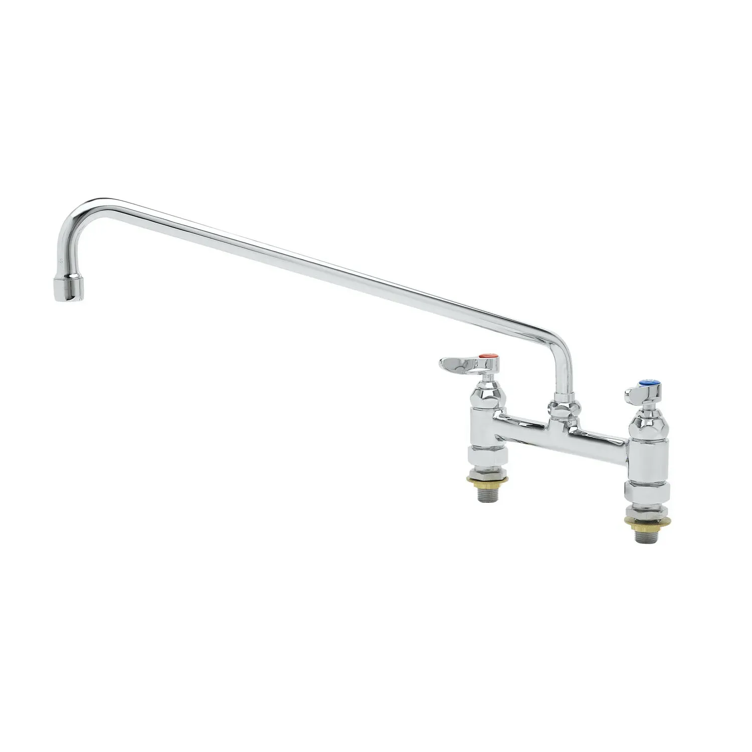 Secure Equipment Operation with the T&S Brass B-0220-CC Deck Mount Faucet. Designed specifically for commercial restaurant use, this double pantry faucet ensures reliable performance and durability. With its 8" centers and 18" swing nozzle, this faucet provides convenient access to water for various tasks in the kitchen. The polished chrome plated brass body not only adds a sleek and professional look to your establishment but also ensures long-lasting use. The 1/2" NPT male inlets make installation quick and easy. Enhance your restaurant's efficiency and productivity with the T&S Brass B-0220-CC Deck Mount Faucet.
