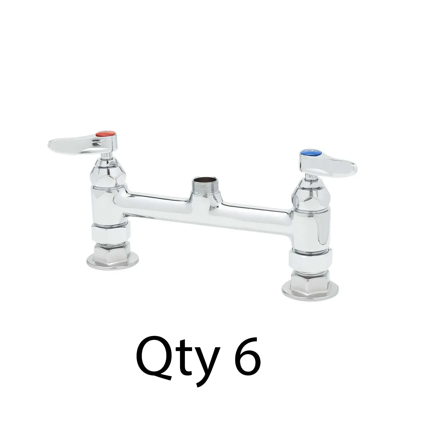 Optimize Equipment Use with T&S Brass, B-0220-LNM, Manual Faucets. These double pantry swivel base faucets are designed specifically for commercial restaurant use. With their 8" deck mount and lever handles, these faucets provide convenience and ease of use in any busy kitchen. The pack includes 6 faucets, ensuring you have enough for multiple sinks or stations. The absence of a nozzle allows you to customize the faucet to your specific needs, whether it's for filling pots or rinsing dishes. T&S Brass, a trusted vendor in the industry, ensures the quality and durability of these faucets. Upgrade your restaurant's equipment with these manual faucets and experience improved efficiency and functionality in your kitchen.