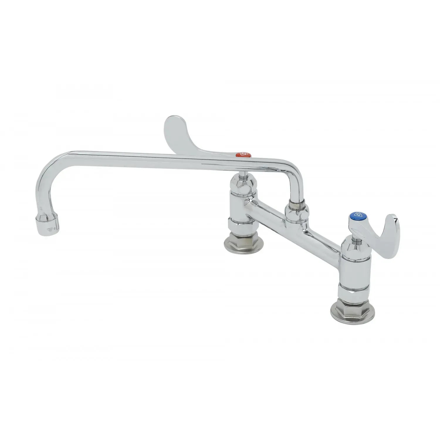 Facilitate Smooth Operation with the T&S Brass, B-0221-CR4-L22, Faucet, Deck Mount. This 8" double pantry faucet is designed to enhance efficiency in commercial restaurant settings. With its deck mount feature, it can be easily installed on countertops, ensuring a seamless workflow. The polished chrome plated brass body not only adds a touch of elegance but also guarantees durability and longevity, even in high-traffic environments. The 12" swing nozzle provides flexibility and convenience, allowing for easy filling of large pots and pans. The 2.2 GPM laminar device ensures a steady and consistent flow of water, perfect for rinsing and cleaning. This faucet comes with a lock washer for rigid application, ensuring stability during heavy use. Trust T&S Brass, a reputable vendor known for their quality products, to deliver a reliable and efficient faucet that will meet the demands of any commercial restaurant.