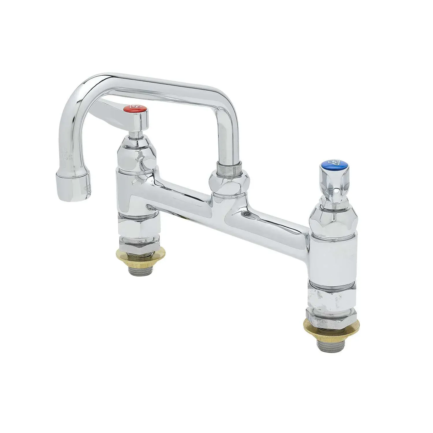 Ensure efficient functionality with the T&S Brass B-0222-CC Deck Mount Faucet. Designed specifically for commercial restaurant use, this double pantry faucet is a reliable and durable choice for any kitchen. With its 8" centers and 6" swing nozzle, this faucet provides easy access to water wherever it's needed. The polished chrome plated brass body not only adds a sleek and professional look to your space but also ensures long-lasting performance. The 1/2" NPT male inlets make installation a breeze, and the included lock washer provides added stability for rigid applications. Whether you're washing dishes, filling pots, or rinsing produce, this deck mount faucet from T&S Brass is the perfect addition to any commercial kitchen. Trust in its quality and functionality to keep your restaurant running smoothly.