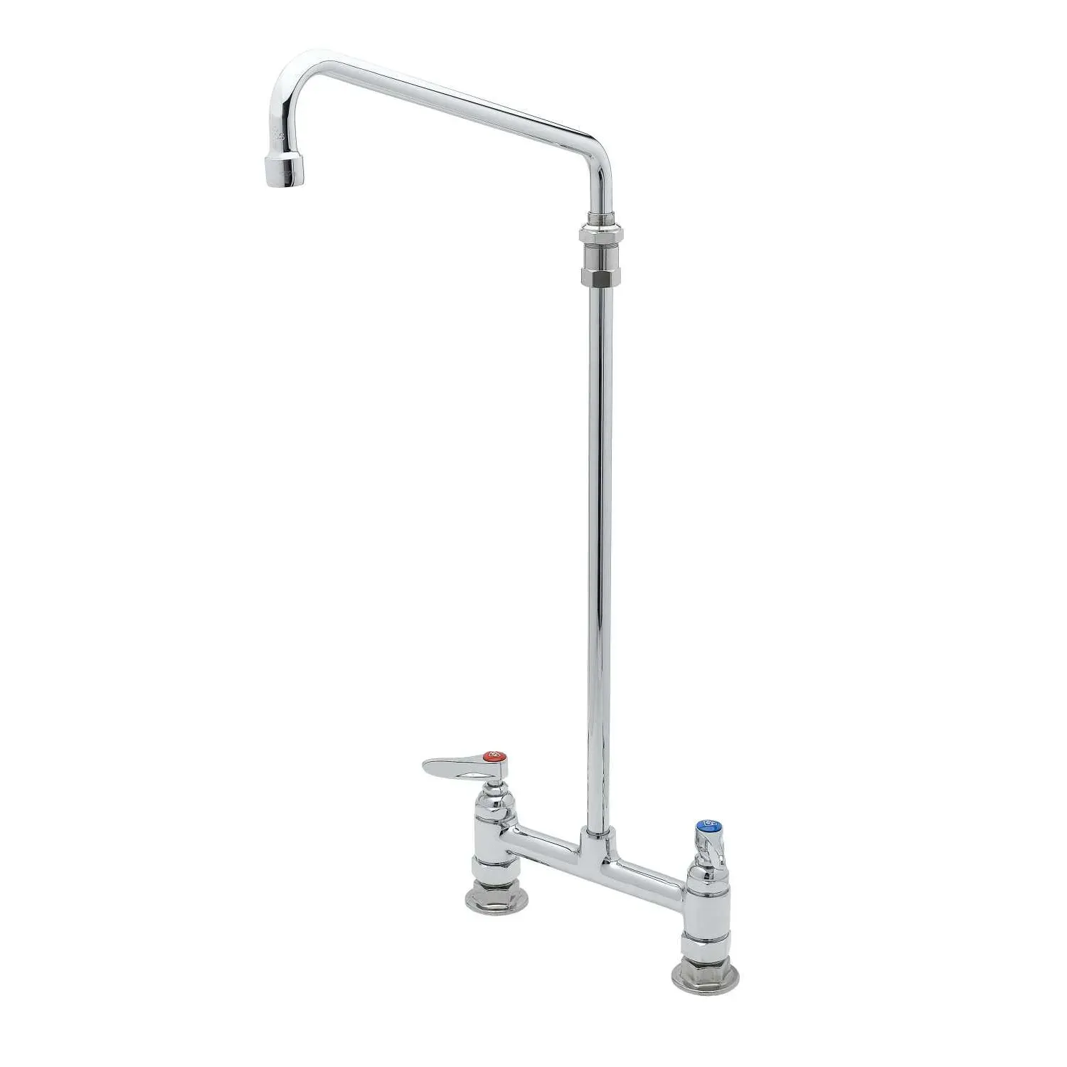Secure Equipment Operation with T&S Brass, B-0281, Faucet, Kettle / Pot Filler. This double pantry faucet is designed for commercial restaurant use, ensuring secure and efficient equipment operation. With its deck mount and 8" centers, it provides a stable and convenient installation option. The polished chrome plated brass body not only adds a sleek and professional look to your kitchen but also ensures durability and longevity. The 12" elevated swing nozzle allows for easy filling of pots and kettles, making it ideal for busy restaurant kitchens. The stream regulator outlet provides a steady and controlled flow of water, preventing splashing and waste. This faucet is part of the Series 1 collection from T&S Brass, known for their high-quality and reliable products. Upgrade your restaurant kitchen with the T&S Brass B-0281 and experience secure equipment operation and enhanced efficiency.