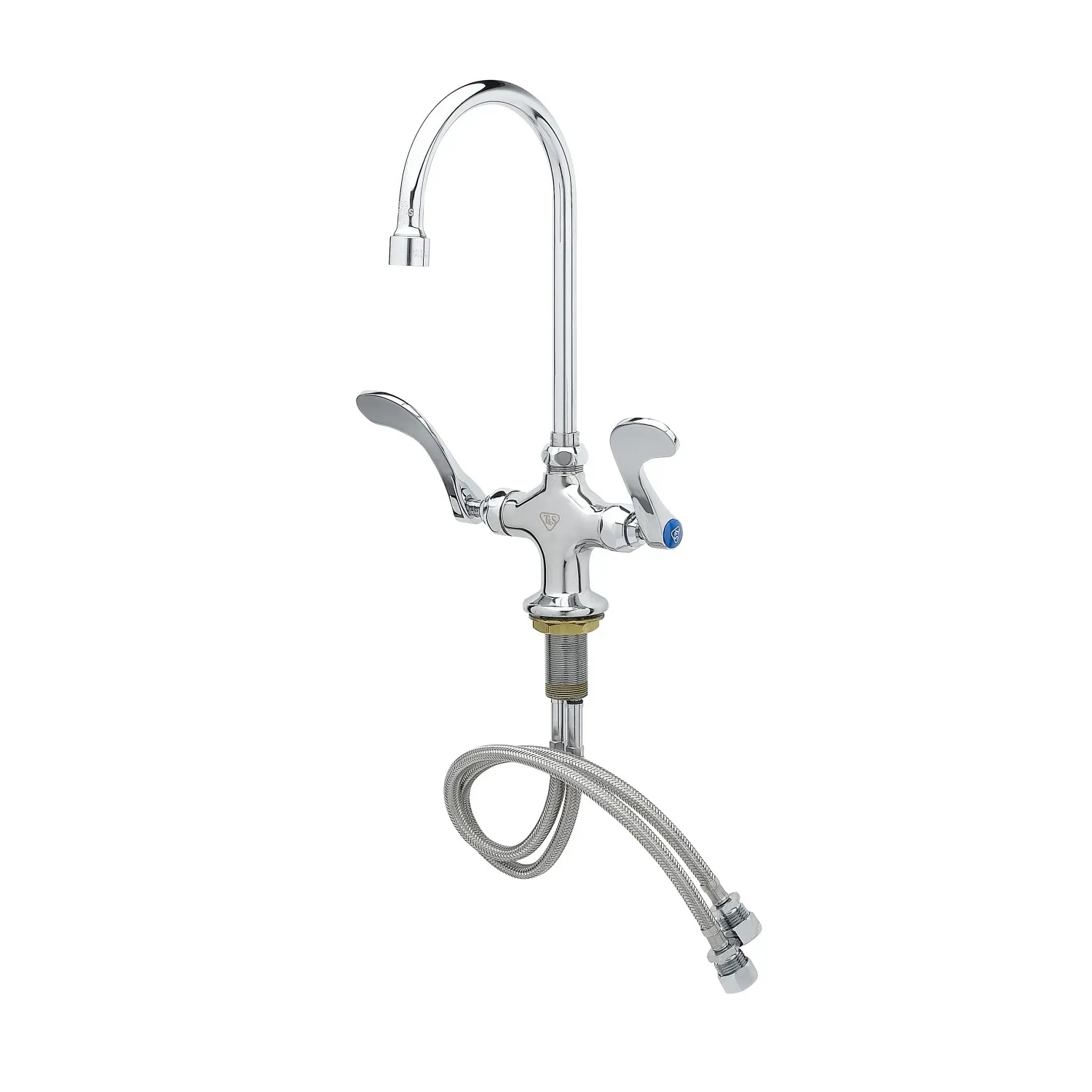 Optimize Equipment Use with the T&S Brass B-0300-VR4 Faucet, Pantry. This double pantry faucet is designed to enhance efficiency and durability in a commercial restaurant setting. With its rigid gooseneck and vandal-resistant features, this faucet is built to withstand the demands of a busy kitchen. The wrist action handles provide easy control and precision, allowing chefs and staff to quickly adjust water flow and temperature. The polished chrome plated brass body adds a sleek and professional touch to any pantry area. The single hole deck mount design and included lock washer make installation a breeze. Whether you're rinsing produce, filling pots, or washing dishes, this T&S Brass faucet is a reliable and versatile choice. Trust in the quality and performance of T&S Brass to optimize your restaurant's equipment use.