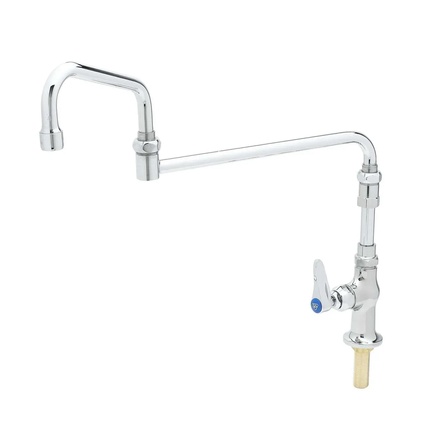 Upgrade Equipment Efficiency with the T&S Brass B-0319-01 Faucet, Pantry. This single hole, single temperature deck mount faucet is designed to enhance the functionality of your commercial restaurant. With its polished chrome plated brass body, it not only adds a touch of elegance to your pantry area but also ensures durability and longevity. The special 18" double-joint swing nozzle with a swivel body provides flexibility and ease of use, allowing you to reach every corner of your sink effortlessly. The stream regulator outlet ensures a steady and controlled flow of water, making it ideal for various tasks such as rinsing dishes and filling pots. The T&S Brass B-0319-01 Faucet, Pantry is a reliable and efficient choice for any busy restaurant kitchen. Upgrade your equipment today and experience the difference it makes in your daily operations.
