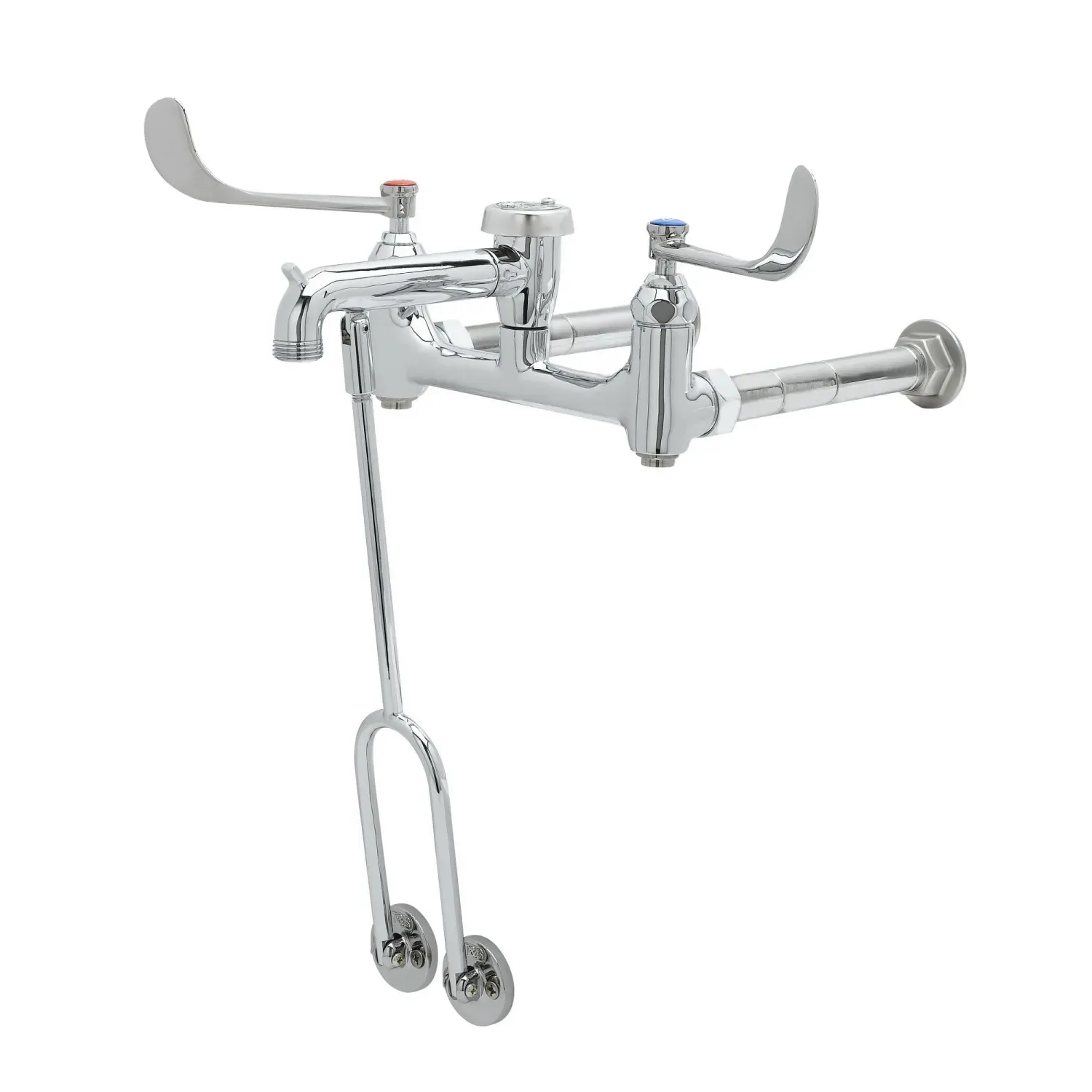 Maximize System Efficiency with T&S Brass, B-0363, Manual Faucets. This service sink faucet is designed specifically for commercial restaurant use, offering exceptional performance and durability. The wall mount design with 8" centers ensures easy installation and convenient access to water. The polished chrome plated brass body and spout not only add a sleek and professional look to your establishment but also provide long-lasting reliability. The faucet features wrist handles for effortless operation, allowing your staff to quickly and efficiently control the water flow. With built-in stops, you can easily shut off the water supply when needed, minimizing water waste and maximizing efficiency. The faucet is also equipped with a vacuum breaker and meets ADA requirements, ensuring safety and compliance. Trust T&S Brass, the leading provider of manual faucets, to enhance the functionality and efficiency of your commercial restaurant.