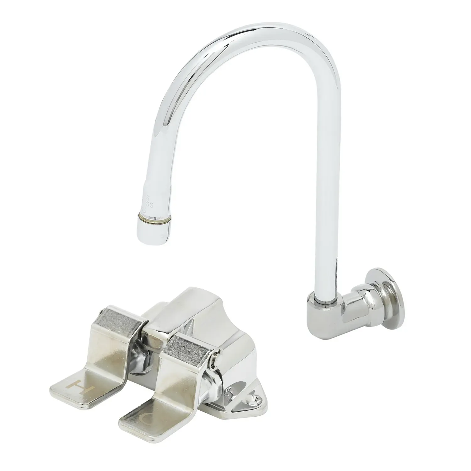 Maximize productivity levels with the T&S Brass B-0502-537K Manual Faucet. Designed specifically for commercial restaurant use, this floor-mounted double pedal valve offers exceptional functionality and durability. The polished chrome plated brass body and gooseneck, along with the rigid dummy gooseneck and short elbow, ensure long-lasting performance in high-traffic environments. With a 2.2 GPM aerator and a 1/2" NPT female inlet, this faucet provides a steady and efficient water flow for various tasks in the kitchen. The adjustable wall flange allows for easy installation and customization. Certified to ASME A112.18.1/CSA B125.1, NSF 61-Section 9, and NSF 372, you can trust the quality and safety of this product. Upgrade your restaurant's efficiency and reliability with the T&S Brass B-0502-537K Manual Faucet.