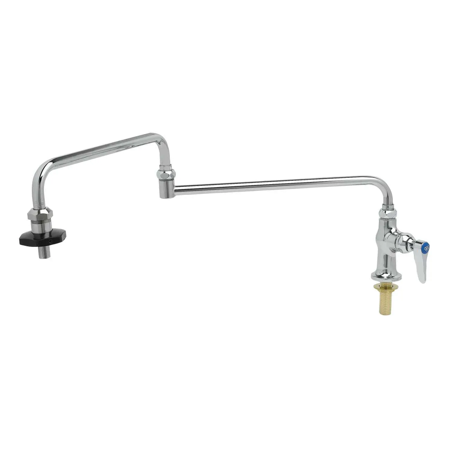 Improve system efficiency with the T&S Brass B-0591 Faucet, Kettle/Pot Filler. Designed for commercial restaurant use, this deck mount pot filler features a single temperature control for precise water flow. The 24" double-joint swing nozzle allows for easy filling of large pots and pans, while the insulated on-off control ensures safe and convenient operation. With its single hole design and lock washer for rigid application, this pot filler is easy to install and provides reliable performance. Whether you're filling up a kettle or a pot, this pot filler is a must-have for any busy commercial kitchen. Upgrade your restaurant's efficiency with the T&S Brass B-0591 Faucet, Kettle/Pot Filler.