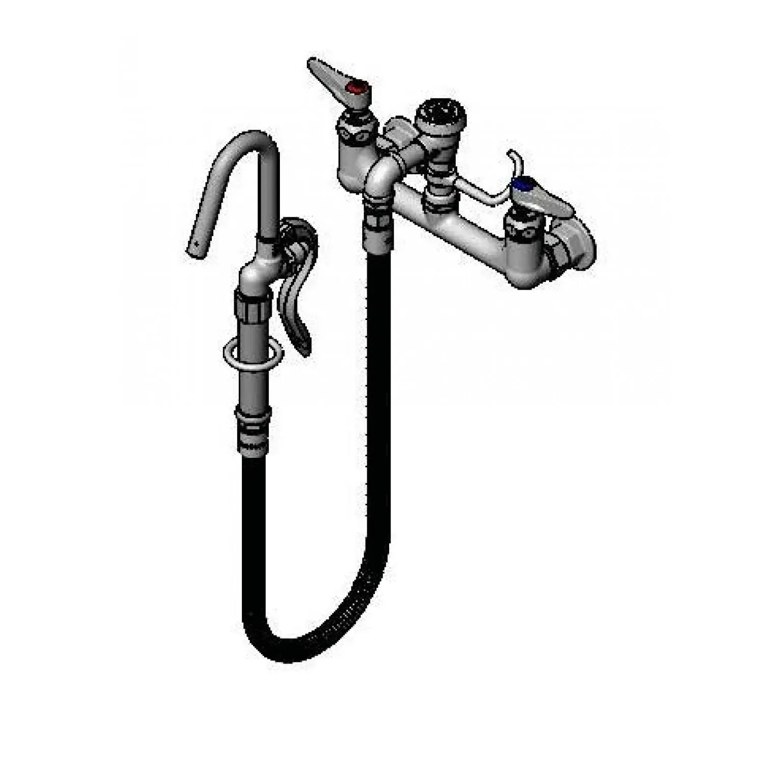 Optimize Usage Efficiency with T&S Brass, B-0610-36H, Faucet, Kettle / Pot Filler. This wall-mounted pot filler is designed to enhance the functionality of your commercial restaurant kitchen. With its 8" centers and chrome-plated brass body, it offers durability and convenience. The atmospheric vacuum breaker ensures the safety of your water supply, while the 36" flexible stainless steel hose with a heat-resistant gray handle and hold-down ring provides flexibility and ease of use. Whether you need to fill large pots or kettles, this pot filler is up to the task. Its hook nozzle allows for precise pouring, minimizing spills and waste. Upgrade your restaurant's efficiency with the T&S Brass, B-0610-36H, Faucet, Kettle / Pot Filler.