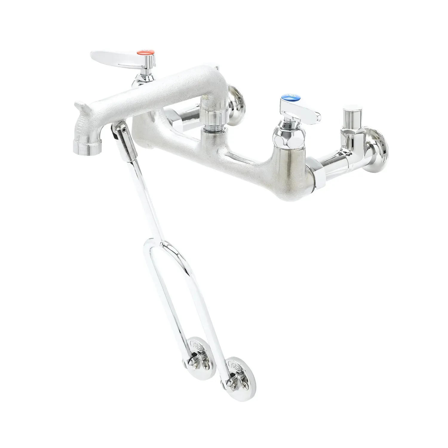 Enhance System Reliability with T&S Brass, B-0651-RGH, Manual Faucets. This service sink faucet is designed specifically for commercial restaurant use, providing exceptional durability and functionality. The wall mount design with 8" centers allows for easy installation and convenient access to water. The pail hook feature is perfect for hanging buckets or other containers, keeping them within reach for efficient cleaning and maintenance tasks. With integral stops, you can easily control the water flow, minimizing waste and ensuring optimal performance. The rough chrome finish not only adds a sleek and professional look to your restaurant's sink area but also enhances the faucet's resistance to corrosion and tarnishing. Trust T&S Brass, a reputable vendor known for their high-quality products, to deliver a reliable and long-lasting manual faucet that meets the demands of a busy commercial kitchen.