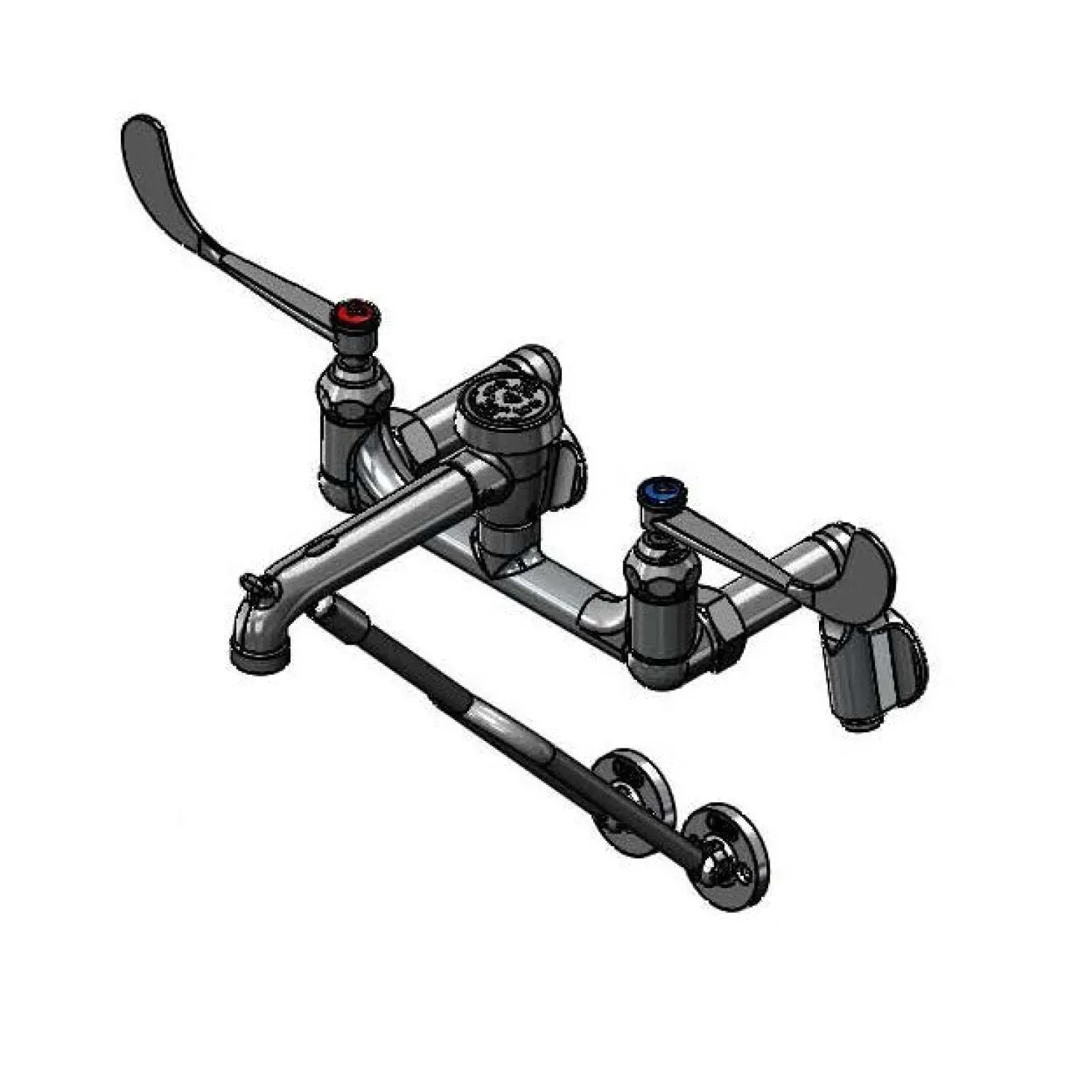 Improve equipment function with the T&S Brass B-0655-03 Manual Faucet. Designed specifically for commercial restaurant use, this service sink faucet offers exceptional performance and durability. With its 8" centers and adjustable arms, it provides flexibility in installation and usage. The integral stops and brace ensure stability and ease of operation, while the 6" wrist-action handles offer precise control over water flow. The polished chrome plated brass body and spout not only add a touch of elegance to your restaurant's decor but also guarantee long-lasting reliability. This faucet is certified to meet various industry standards, including ASME A112.18.1/CSA B125.1, NSF 61-Section 9, NSF 372, and ASSE 1001. It also complies with ADA ANSI/ICC A117.1 requirements, ensuring accessibility for all users. Upgrade your restaurant's equipment with the T&S Brass B-0655-03 Manual Faucet and experience enhanced functionality and performance.