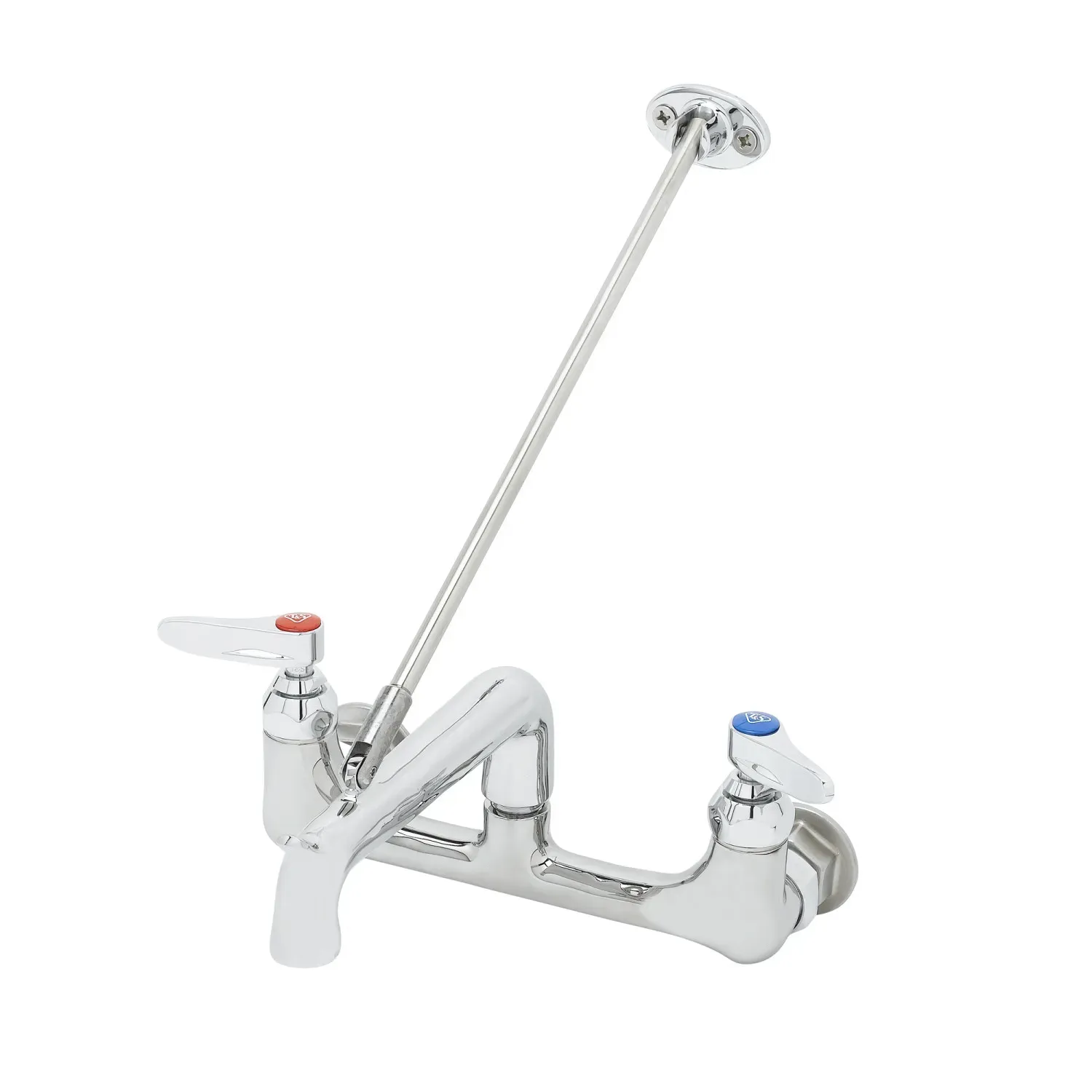 Facilitate Equipment Reliability with the T&S Brass B-0660-POL Manual Faucet. Designed specifically for commercial restaurant use, this wall-mounted faucet ensures durability and functionality. With its 8" centers and wall brace, it provides stability and support, making it perfect for high-volume environments. The polished chrome plated brass body and spout not only add a touch of elegance but also guarantee long-lasting performance. The plain-end outlet allows for easy connection to various plumbing systems. Equipped with compression cartridges with spring checks and lever handles, this faucet offers precise control over water flow and temperature. It meets the highest industry standards, including ASME A112.18.1/CSA B125.1, NSF 61- Section 9, NSF 372, and ADA ANSI/ICC A117.1 requirements. Trust T&S Brass, a reputable vendor known for their quality products, to enhance the reliability of your restaurant equipment.