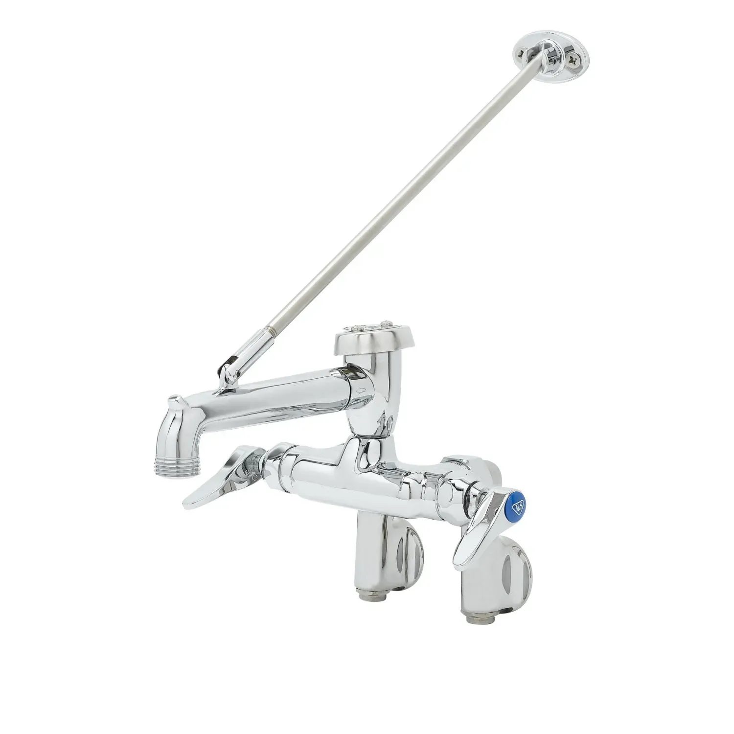 Enhance Equipment Efficiency with T&S Brass, B-0667-POL, Manual Faucets. This service sink faucet is designed specifically for commercial restaurant use, offering exceptional functionality and durability. The wall mount design with adjustable centers allows for easy installation and customization to fit your specific needs. The polished chrome plated brass body and spout not only provide a sleek and professional look but also ensure long-lasting performance. With features like a vacuum breaker, wall brace, pail hook, and garden hose male outlet, this faucet offers versatility and convenience in any kitchen environment. The compression cartridges with spring checks and lever handles provide smooth operation and precise control of water flow. Certified to meet various industry standards, including ASME, CSA, NSF, and ADA, this faucet guarantees compliance and reliability. Upgrade your restaurant's equipment with the T&S Brass B-0667-POL and experience enhanced efficiency and productivity.