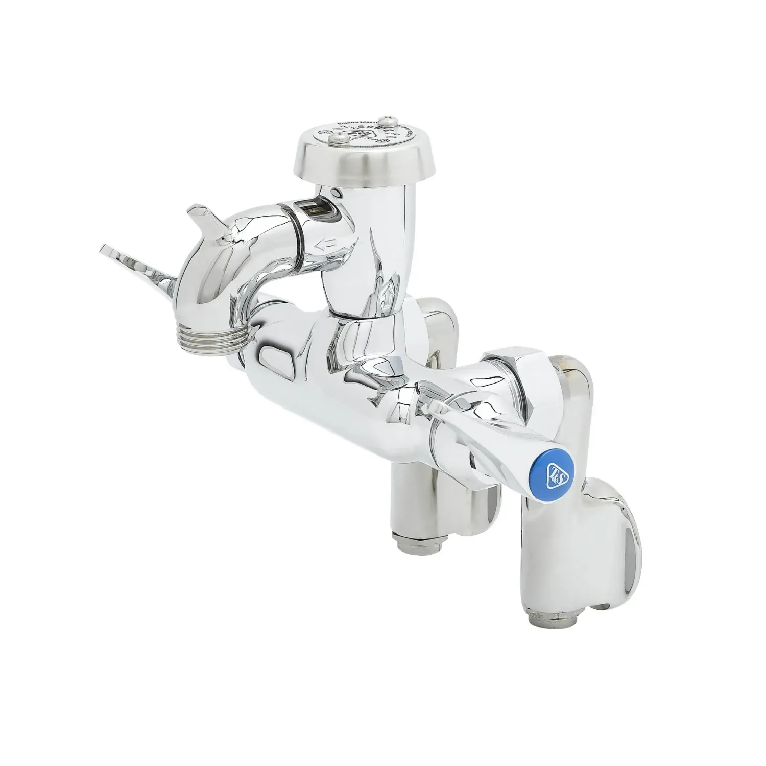 Maximize Equipment Performance with the T&S Brass B-0669-01 Manual Faucet. Designed specifically for commercial restaurant use, this wall-mounted faucet offers adjustable center positioning, ensuring easy access to water wherever it's needed. The polished chrome finish adds a touch of elegance to any kitchen, while the vacuum breaker prevents backflow contamination. Equipped with a pail hook and a garden hose male outlet, this faucet provides versatility for various tasks. The compression cartridges with spring checks and lever handles offer smooth operation and precise control over water flow. With 1/2" NPT female adjustable arm inlets and built-in service stops, installation and maintenance are a breeze. Certified to meet industry standards, including ASME A112.18.1/CSA B125.1, NSF 61-Section 9, NSF 372, and ASSE 1001, this faucet ensures reliability and compliance. Upgrade your restaurant's plumbing system with the T&S Brass B-0669-01 Manual Faucet and experience enhanced performance and durability.