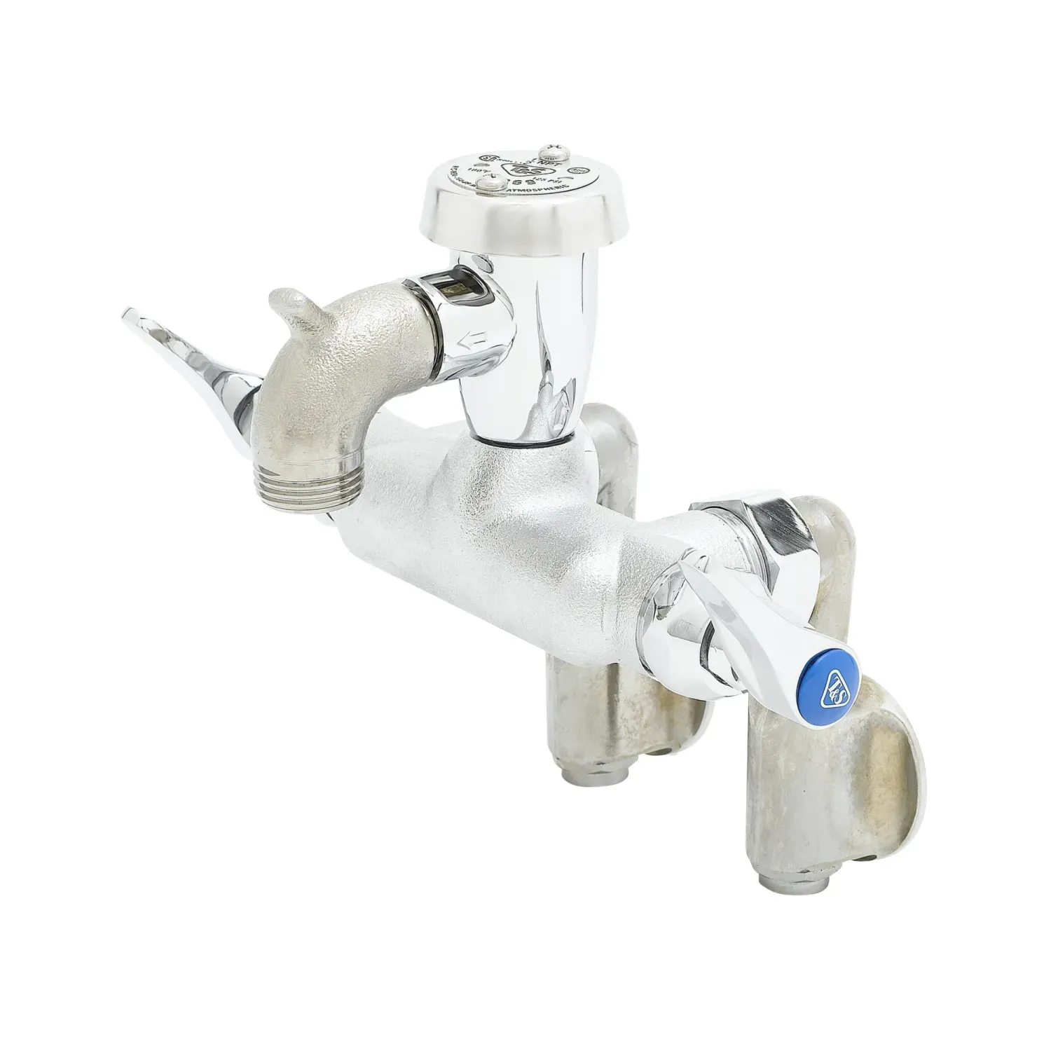 Optimize Operational Functionality with T&S Brass, B-0669-02, Manual Faucets. This service sink faucet is designed specifically for commercial restaurant use, offering exceptional performance and durability. The wall mount design and adjustable center make it easy to install and customize to fit your specific needs. The rough chrome finish not only adds a sleek and professional look to your kitchen, but also ensures long-lasting resistance to corrosion and tarnishing. The integral stop feature allows for convenient control of water flow, while the vacuum breaker prevents backflow contamination. Additionally, the pail hook provides a convenient storage solution for buckets and other cleaning tools. With T&S Brass, you can trust in the quality and reliability of their products. Upgrade your restaurant's operational functionality with the T&S Brass, B-0669-02, Manual Faucet.