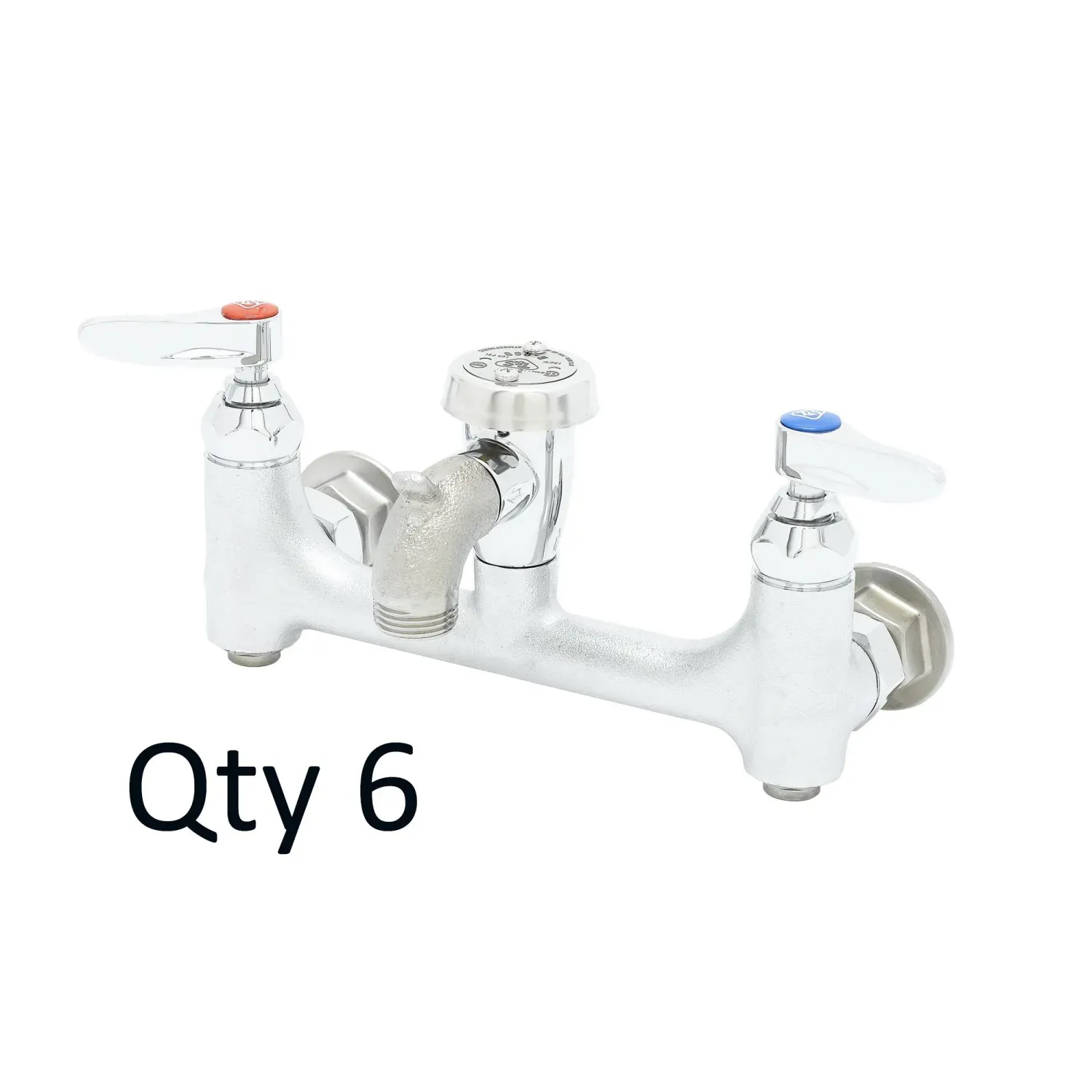 Maintain System Efficiency with T&S Brass, B-0674-BSTRM, Manual Faucets. This service sink faucet is designed specifically for commercial restaurant use, ensuring optimal performance and durability. With a wall mount design and 8" centers, it provides a convenient and space-saving solution for your restaurant's service sink. The built-in vacuum breaker prevents backflow, ensuring the safety and cleanliness of your water supply. Additionally, this faucet features built-in stops, allowing for easy maintenance and repair. The rough finish adds a rugged and industrial look to your restaurant's kitchen, while also providing extra durability to withstand the demands of a busy commercial environment. Trust T&S Brass to deliver reliable and efficient manual faucets that meet the needs of your commercial restaurant.