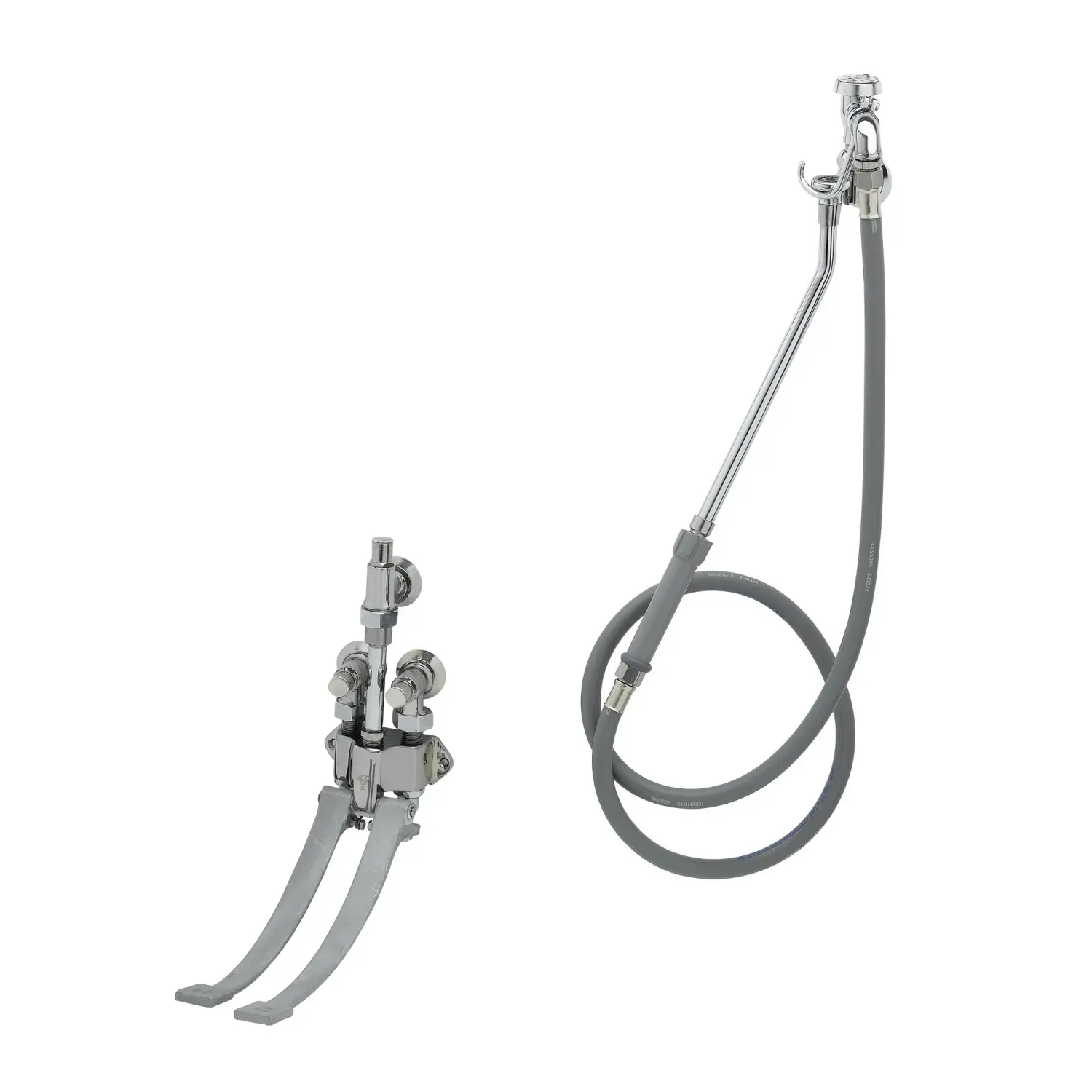 Facilitate Equipment Reliability with the T&S Brass B-0677 Manual Faucet. Designed specifically for commercial restaurant use, this bedpan washer is a reliable and efficient addition to any kitchen. The pedal valve with integral stops allows for easy control of water flow, while the extended spray outlet ensures thorough cleaning. The 5' hose provides flexibility and reach, making it easy to clean hard-to-reach areas. With its wall mount design and angled loose key stops, this faucet is easy to install and use. The 3/8" atmospheric vacuum breaker with wall hook ensures the safety of your water supply, while the 68" PVC hose with extended nozzle offers a powerful spray. Certified to ASME A112.18.1/CSA B125 and ASSE 1001, this T&S Brass faucet is built to last. Upgrade your restaurant's equipment with the T&S Brass B-0677 Manual Faucet for reliable performance and peace of mind.