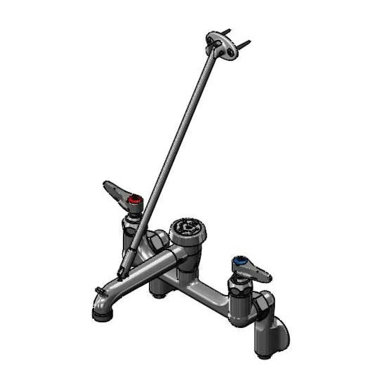 Ensure Equipment Consistency with T&S Brass, B-0689, Manual Faucets. This 8"c/c Wall Mount Serv.Sink Fct is the perfect addition to any commercial restaurant. With adjustable 1/2"NPT inlet flanges, this faucet offers flexibility and convenience. The polished chrome plated brass body and spout not only provide durability but also add a touch of elegance to your establishment. The vacuum breaker ensures the safety of your water supply, while the spring checks prevent backflow. The lever handles make it easy to control the water flow, and the pail hook and garden hose male outlet add versatility. This faucet comes with (2) 36" stainless steel supply hoses and a 1/2" NPT male elbow installation kit for easy setup. Certified to meet various standards, including ASME A112.18.1/CSA B125.1 and NSF 61-Section 9, this faucet is a reliable choice for any commercial kitchen. Upgrade your restaurant equipment with T&S Brass, B-0689, Manual Faucets.