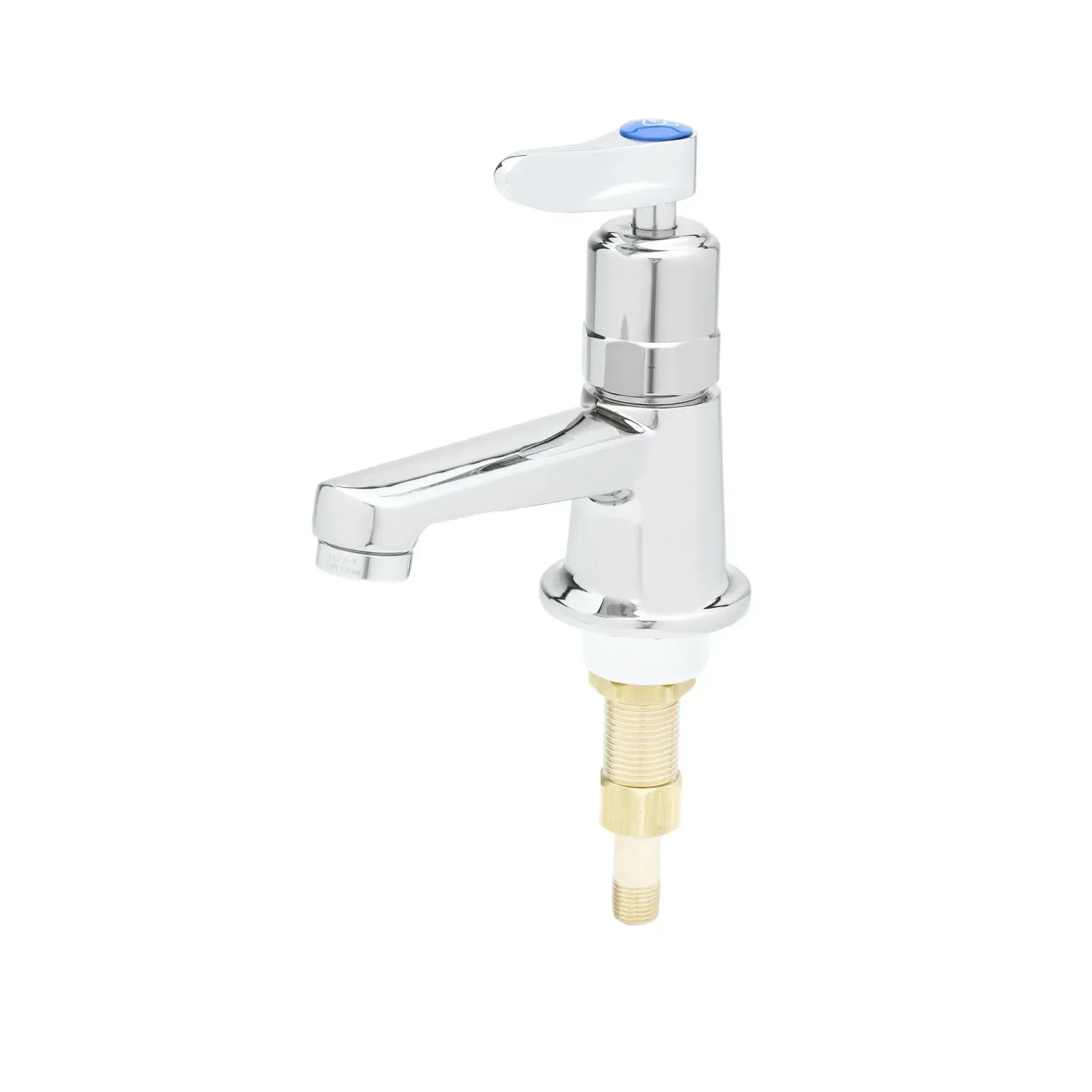 Maintain System Performance with the T&S Brass B-0712-01VRS Manual Faucet. Designed for commercial restaurant use, this self-closing metering sill faucet ensures efficient water usage and prevents wastage. The lever handle allows for easy operation, while the vandal-resistant handle screw adds durability and security. With a polished chrome plated brass body, this deck mount faucet not only looks sleek but also withstands the rigors of a busy kitchen. The 2.2 GPM vandal-resistant aerator ensures a steady flow of water while conserving water resources. The metering cartridge further enhances water efficiency by controlling the flow duration. Certified to ASME A112.18.1/CSA B125.1, NSF 61-Section 9, and NSF 372, this faucet meets industry standards for safety and quality. It also complies with ADA ANSI/ICC A117.1 requirements, ensuring accessibility for all users. Upgrade your restaurant's plumbing system with the T&S Brass B-0712-01VRS Manual Faucet and enjoy reliable performance and water conservation.