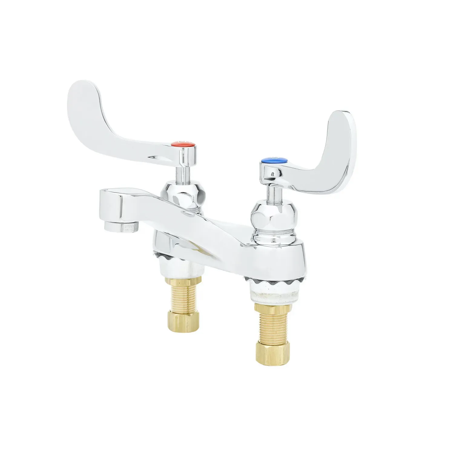 Maintain Operational Safety with the T&S Brass B-0890-CR-VRS Manual Faucet. This 4" centerset faucet is designed specifically for commercial restaurant use, ensuring reliable performance and durability. The polished chrome plated brass body and integral spout not only add a sleek look to your establishment but also provide long-lasting resistance to corrosion and wear. The 2.2 GPM vandal-resistant aerator helps conserve water while maintaining optimal flow. With ceramic cartridges and check valves, this faucet offers smooth operation and prevents leaks. The 4" wrist action handles allow for easy control and precise temperature adjustment. Additionally, the faucet is certified to meet ASME A112.18.1/CSA B125.1, NSF 61-Section 9, and NSF 372 standards, ensuring compliance with health and safety regulations. Upgrade your restaurant's kitchen with the T&S Brass B-0890-CR-VRS Manual Faucet for a reliable and efficient solution.