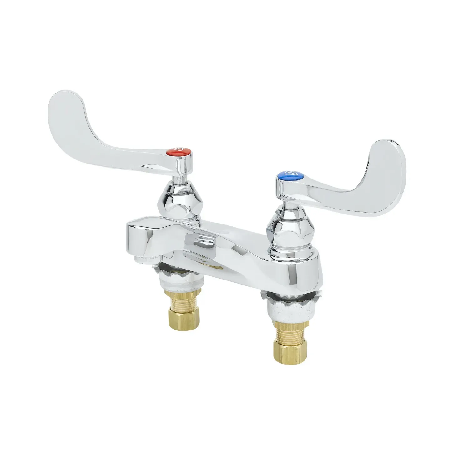 Maintain Equipment Reliability with the T&S Brass B-0890-F12 Manual Faucet. This deck mount lavatory faucet is designed for commercial restaurant use, ensuring durability and efficiency. With its 4" wrist action handles, this faucet offers easy operation and precise control of water flow. The polished chrome plated brass body and integral spout not only provide a sleek and professional look but also guarantee long-lasting performance. The 1.2 GPM aerator helps conserve water without compromising on performance. Equipped with compression cartridges with spring checks, this faucet prevents leaks and ensures smooth operation. Certified to ASME A112.18.1/CSA B125.1, NSF 61-Section 9, NSF 372, and EPA WaterSense, this faucet meets the highest industry standards. It also complies with ADA ANSI/ICC A117.1 requirements, making it accessible for all users. Upgrade your restaurant's lavatory with the T&S Brass B-0890-F12 Manual Faucet and enjoy reliable performance and water efficiency.